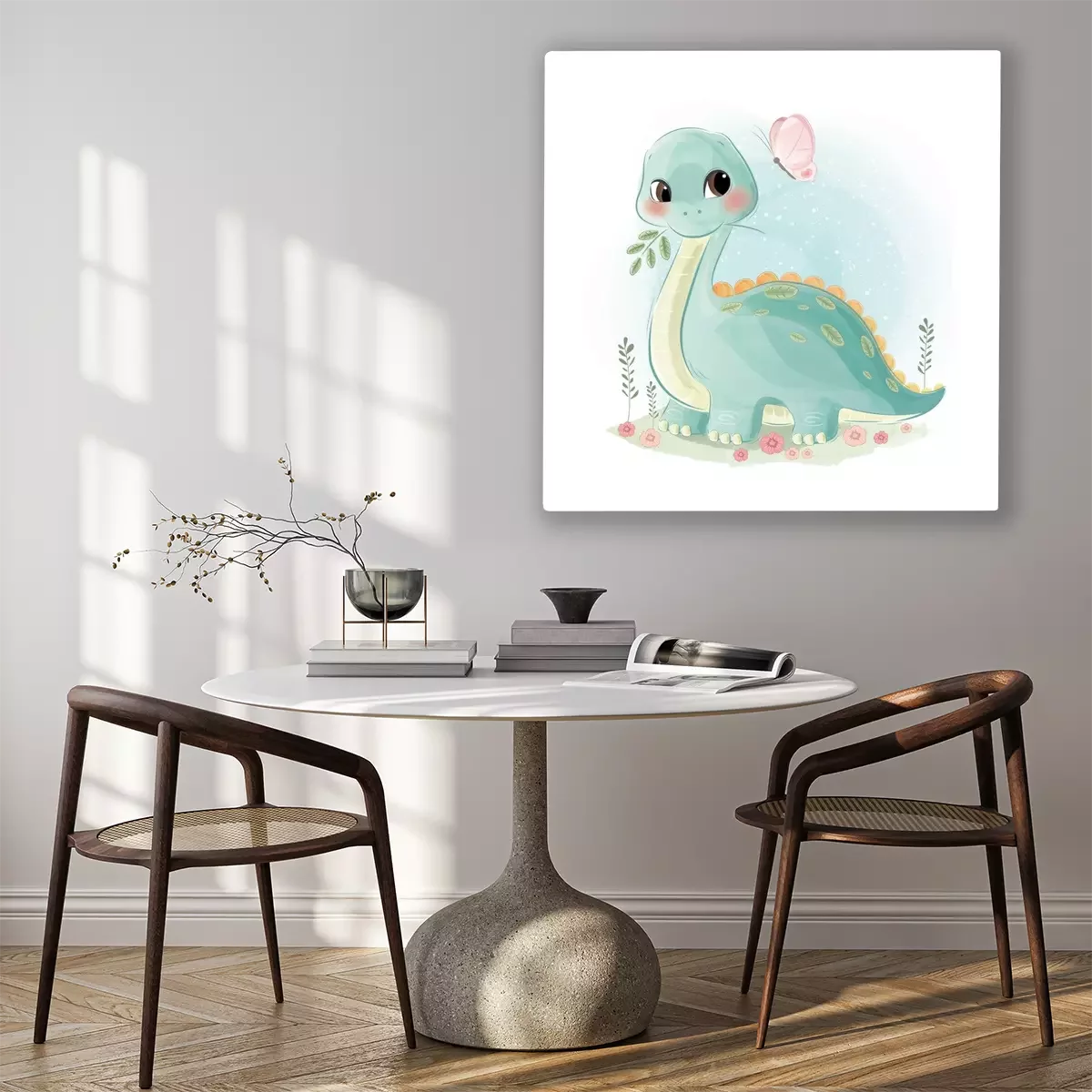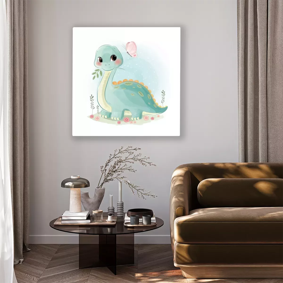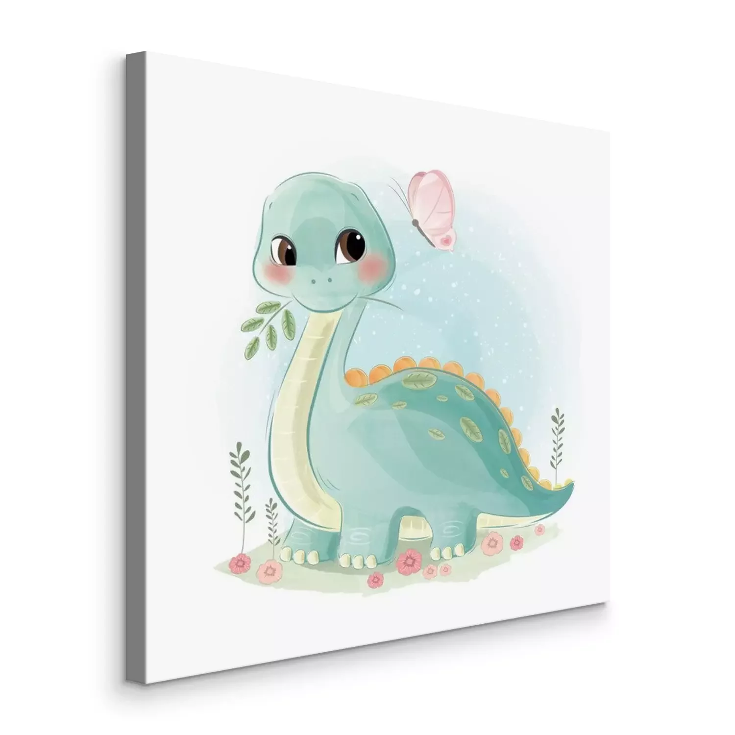 Canvas: Een dinosaurus die een vlinder bekijkt