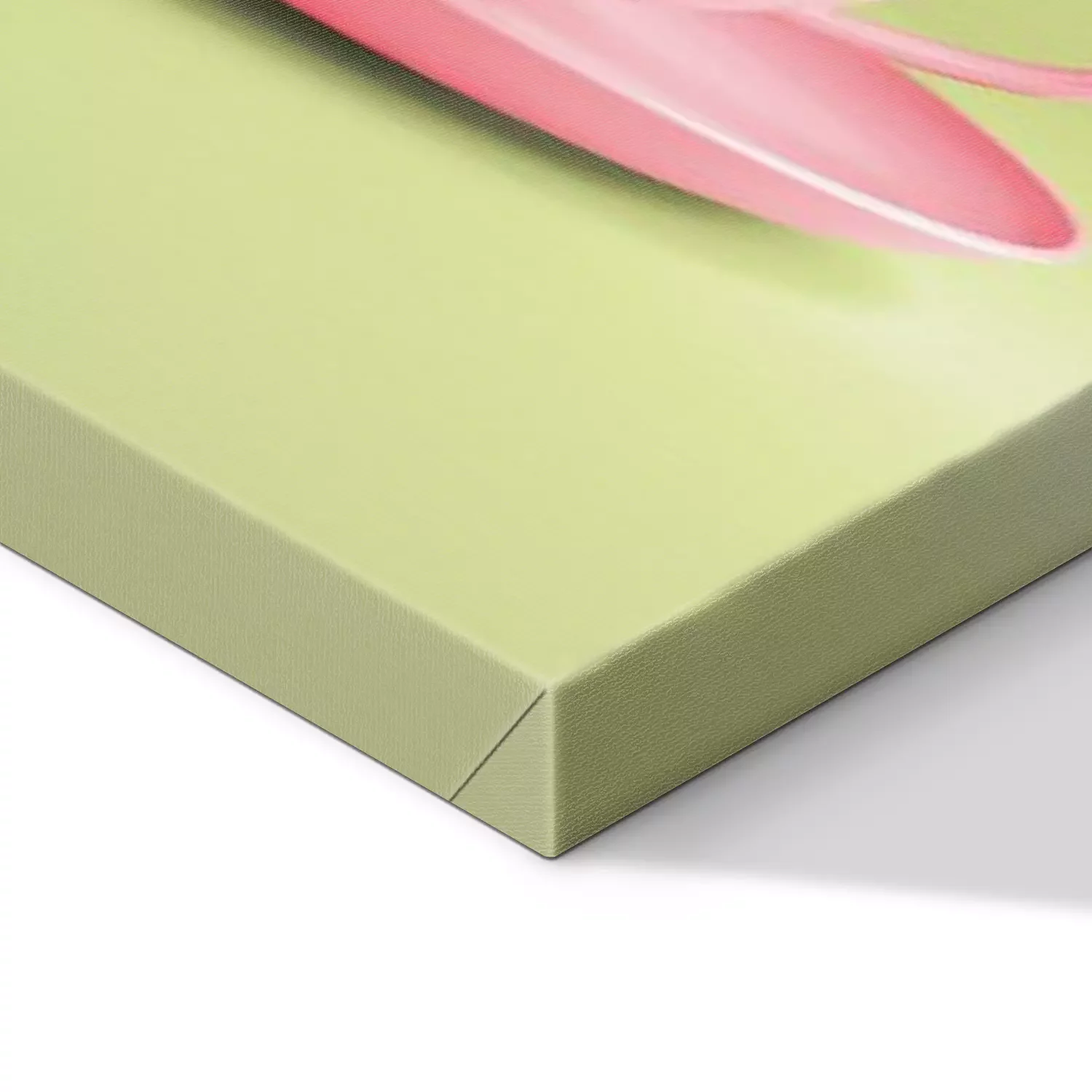 Een elegante aquarel van een roze kopje op een groene achtergrond.