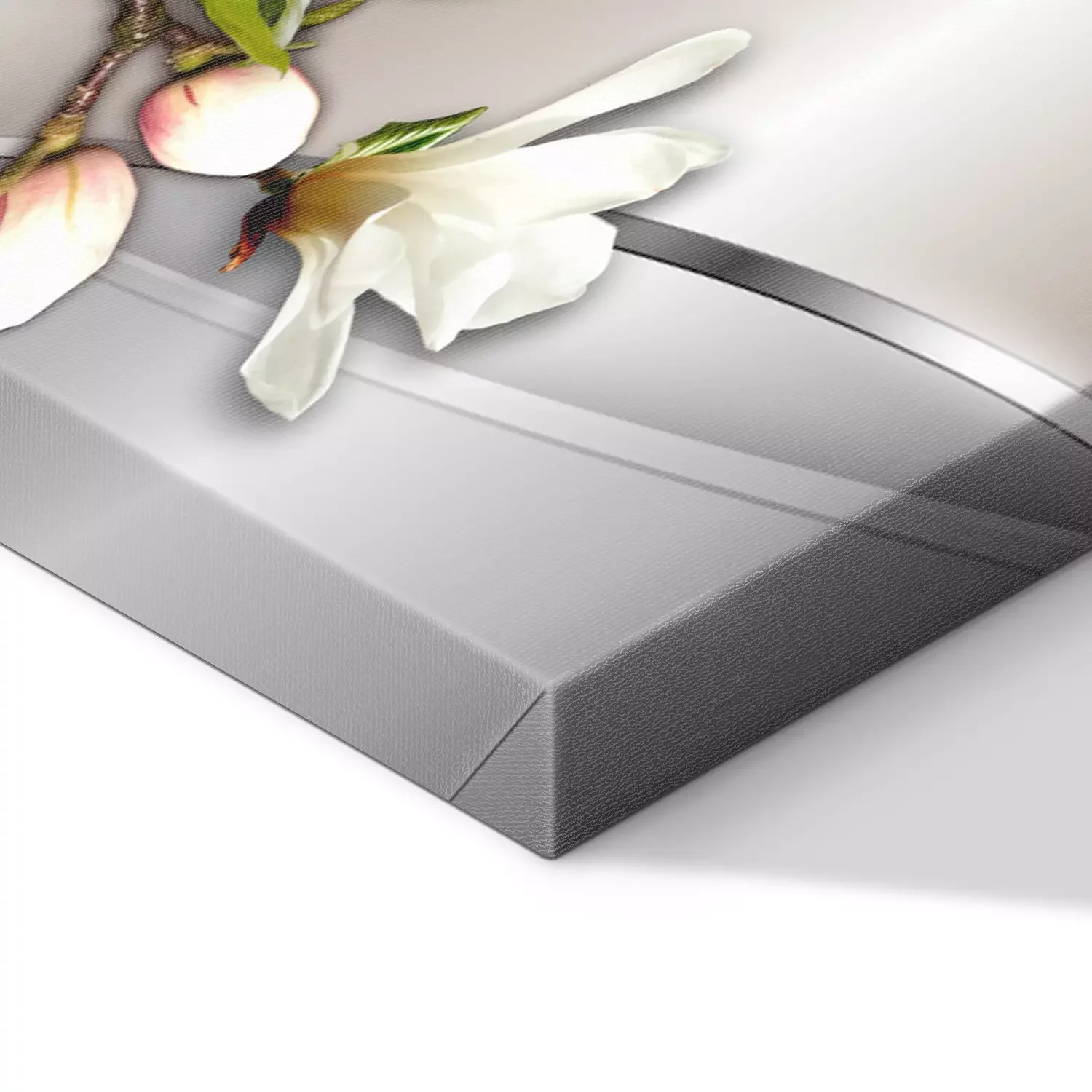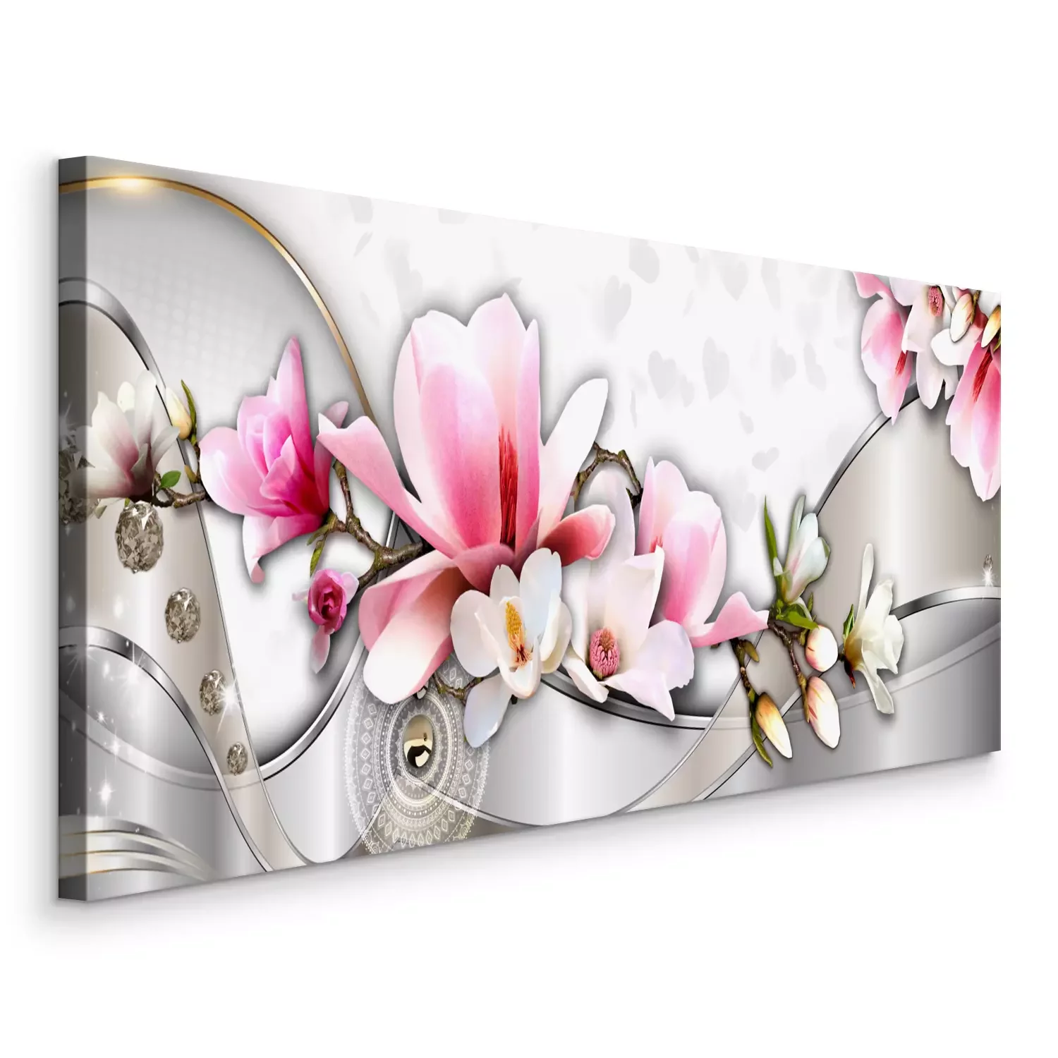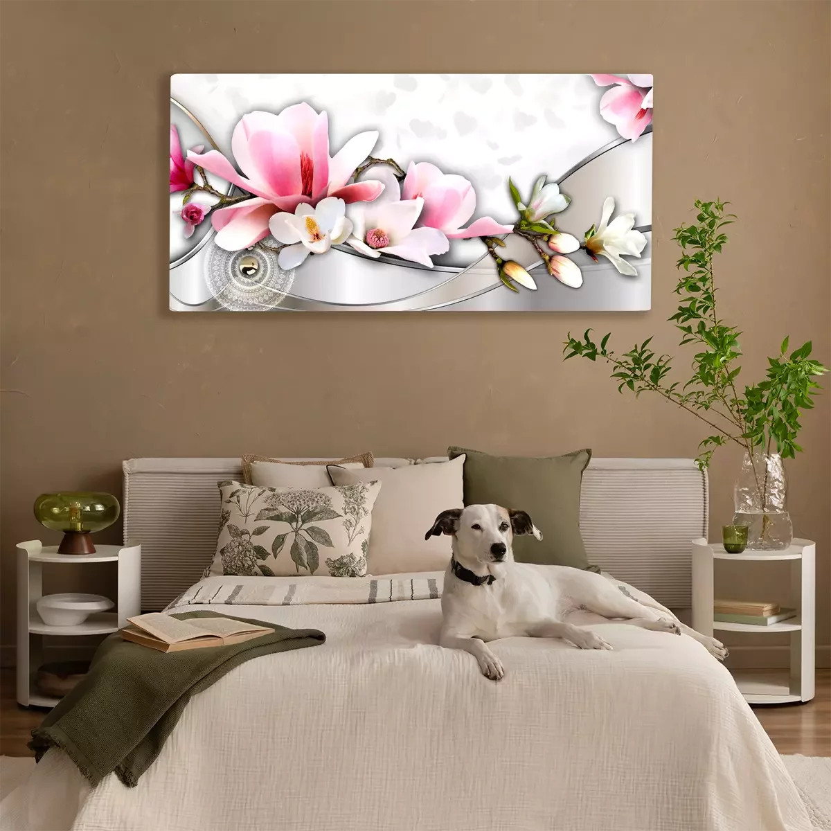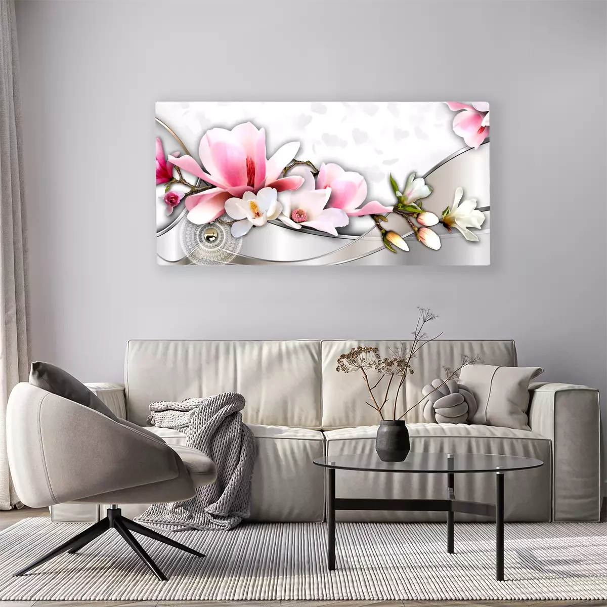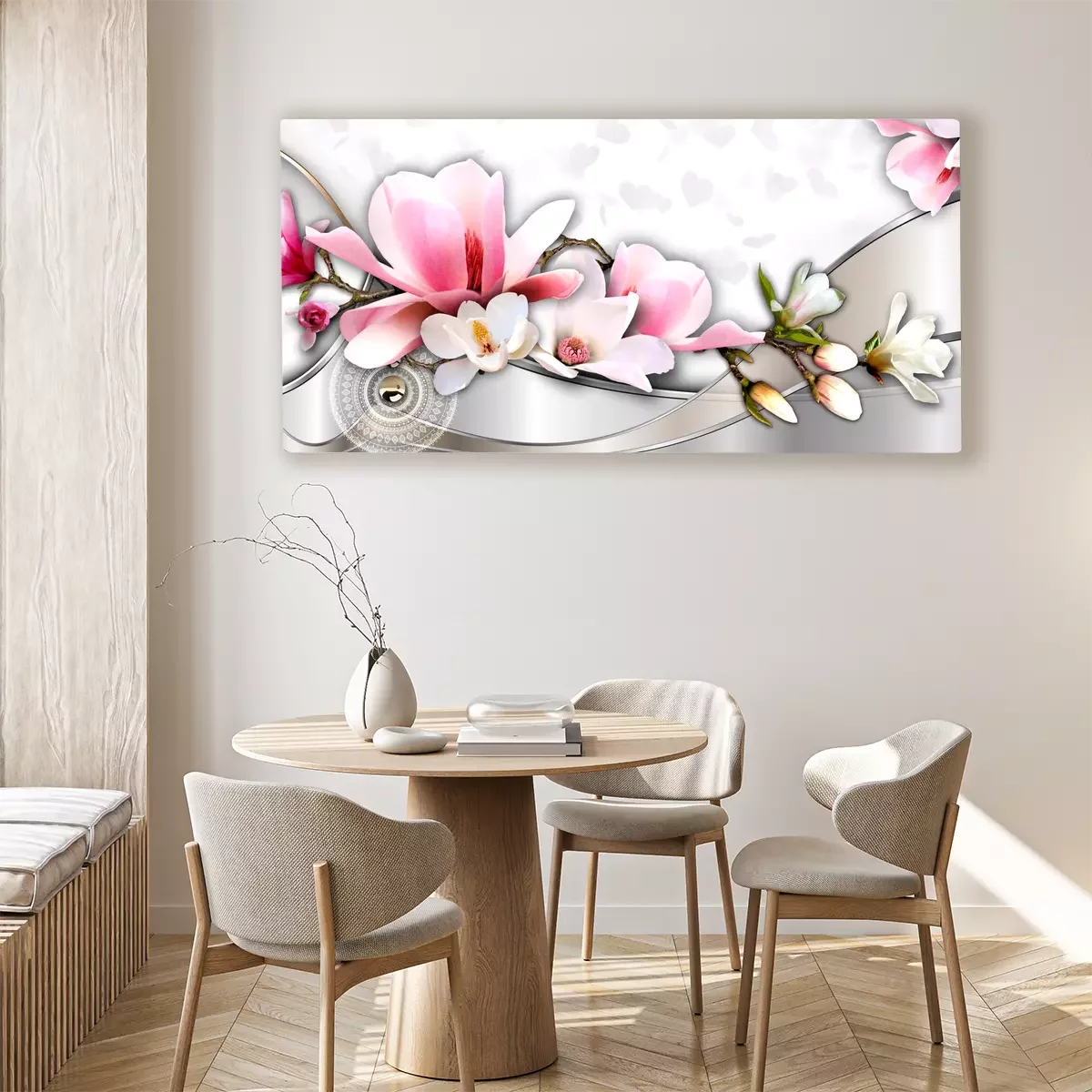 Een elegante compositie van roze magnolia's op een metalen achtergrond