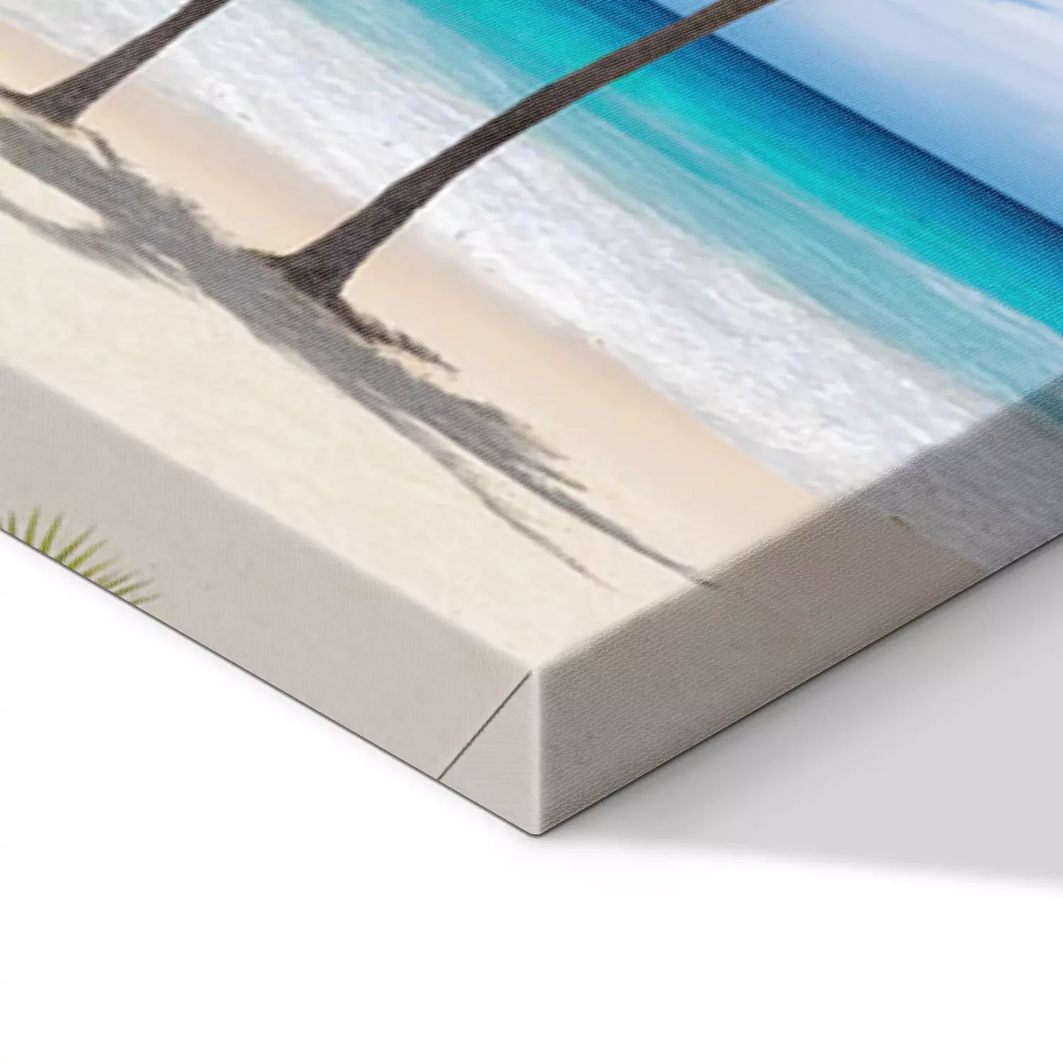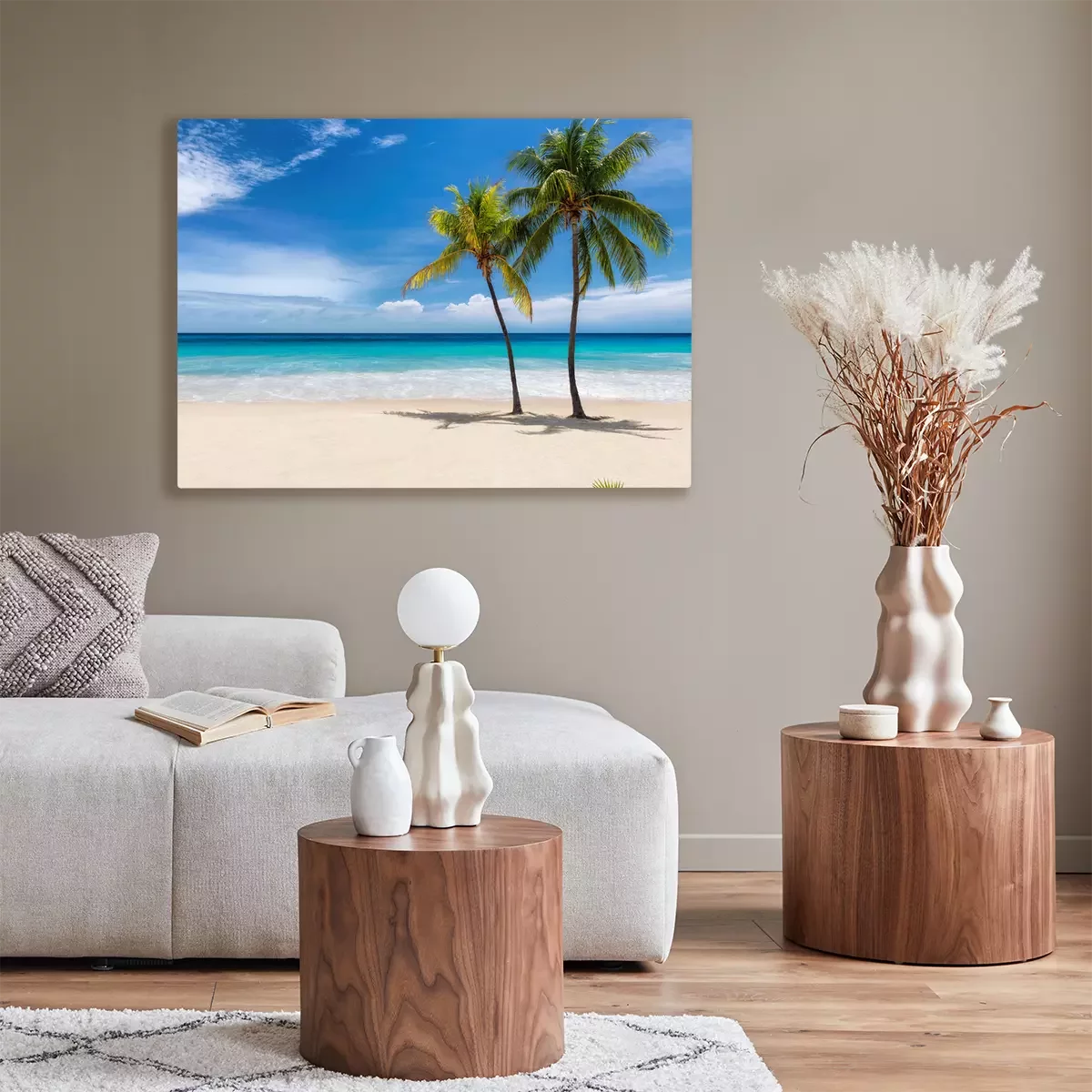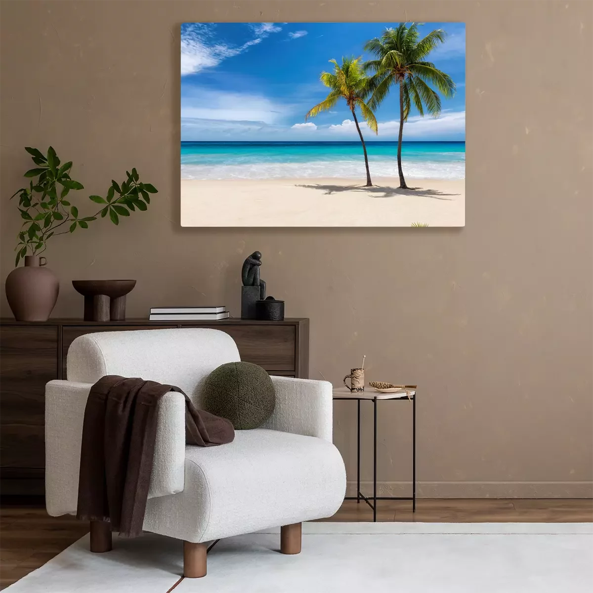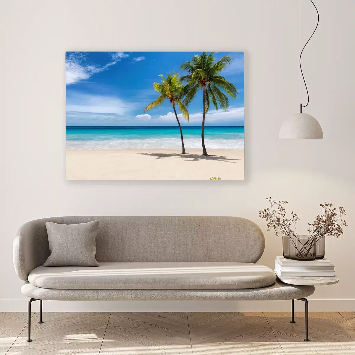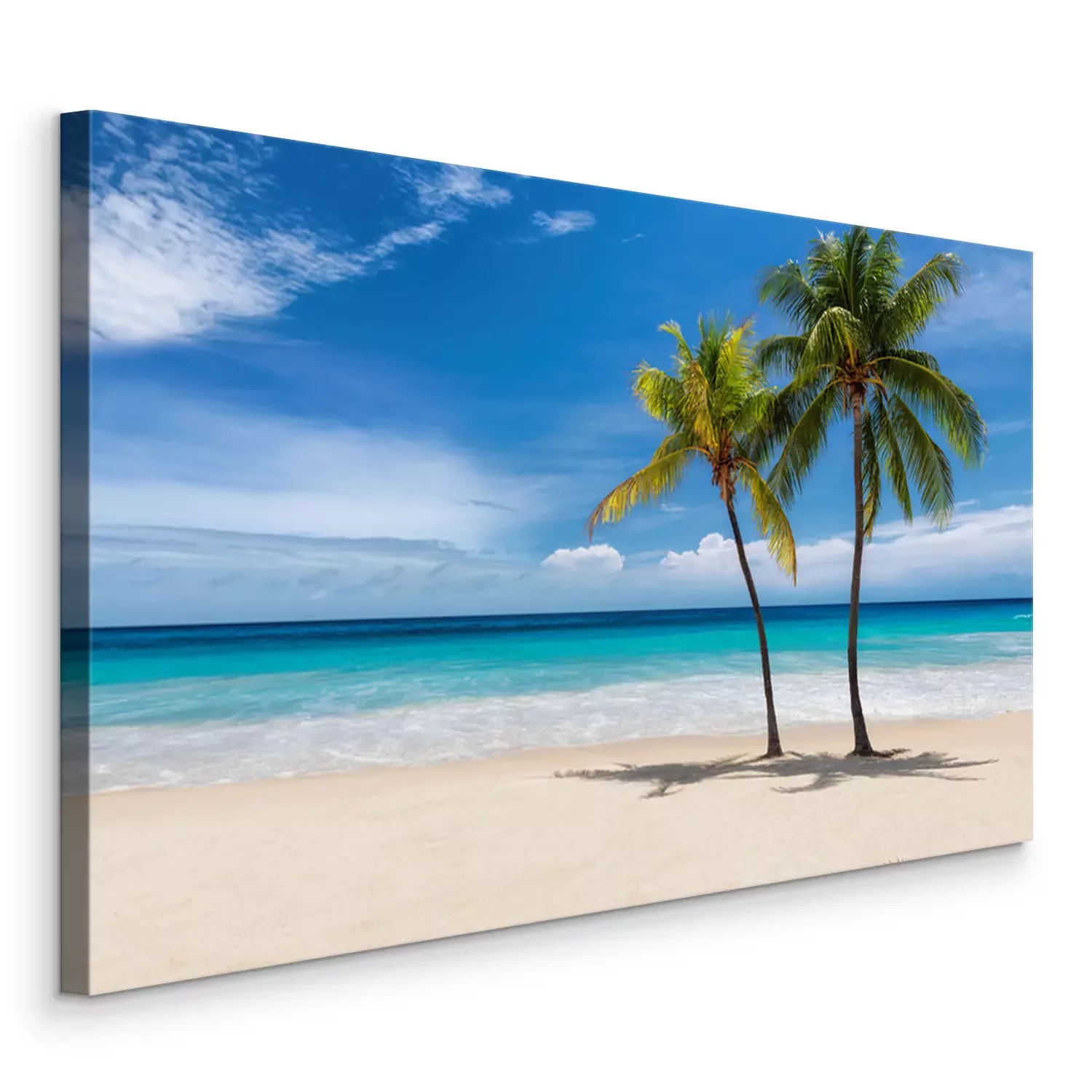 Canvas: Een exotisch strand met turquoise zee en palmbomen