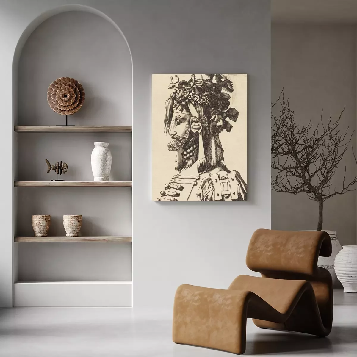 Een fantasierijke compositie van een menselijk profiel
