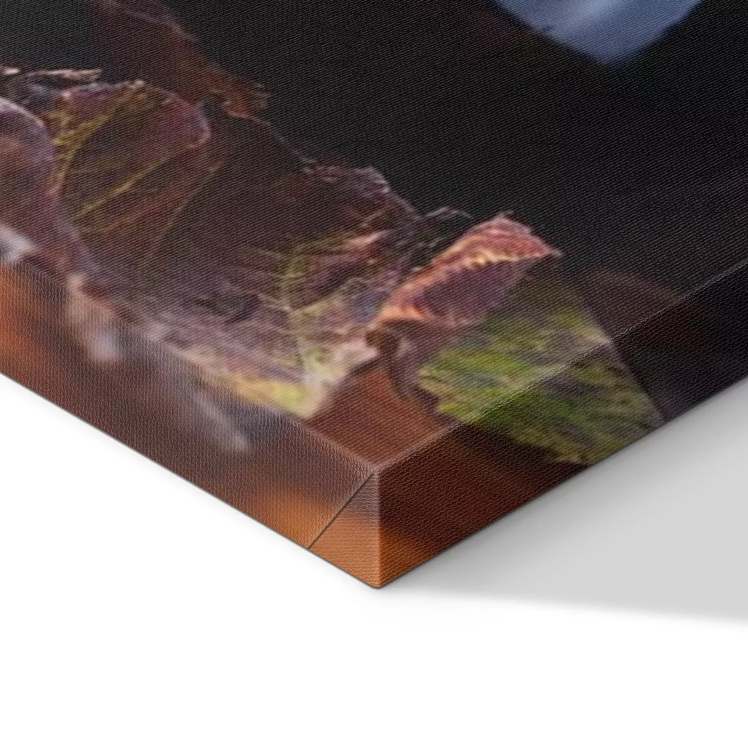 De print wordt aangebracht op hoogwaardig canvas dat op een schildersweefgetouw (spieraam) wordt gespannen. Omdat de print de zijranden bedekt, hoeft het ontwerp niet met een extra kader te worden omlijst. Wij raden ook composities aan die uit meerdere foto's bestaan en zo een coherente compositie vormen.