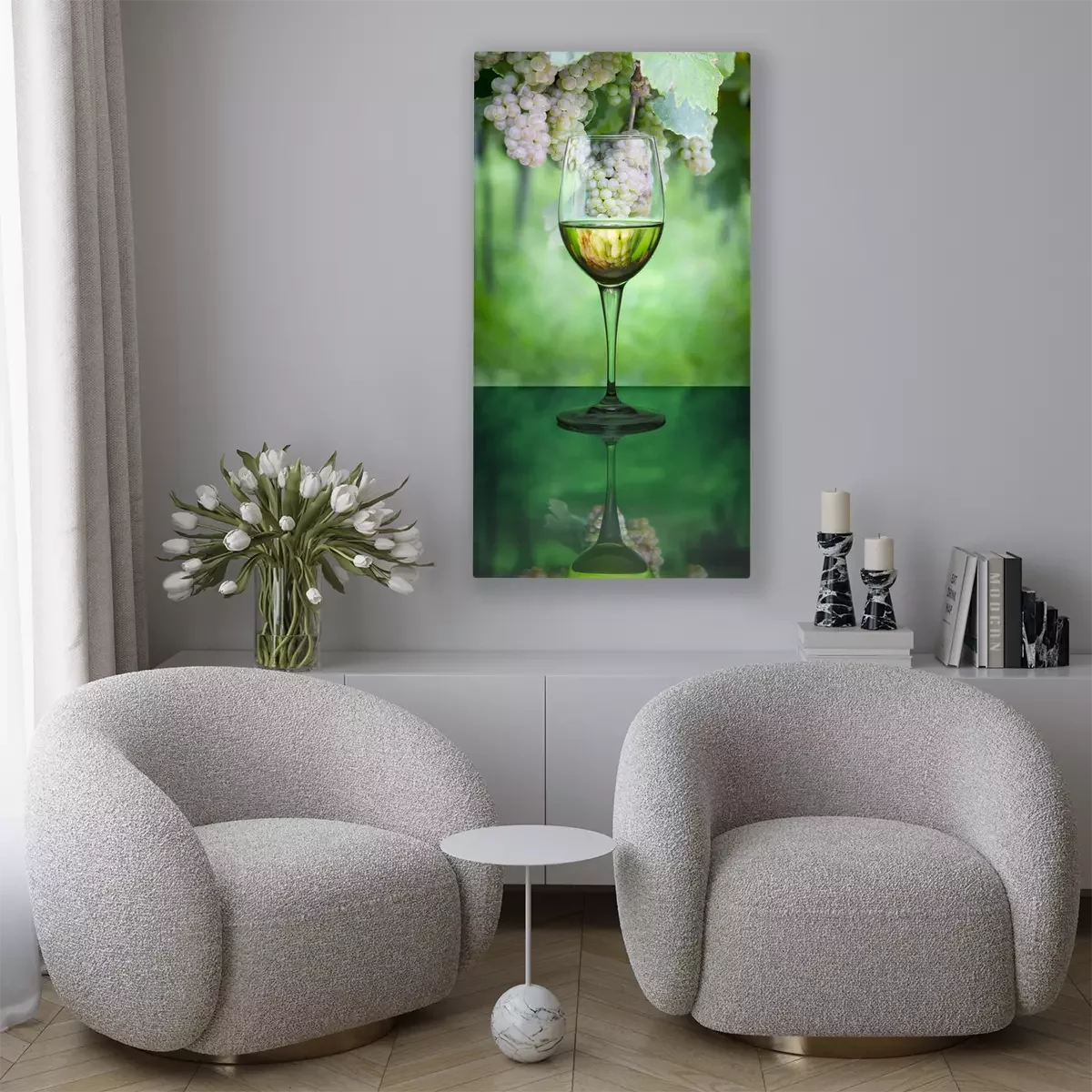 Canvas Een glas witte wijn op een achtergrond van fruit