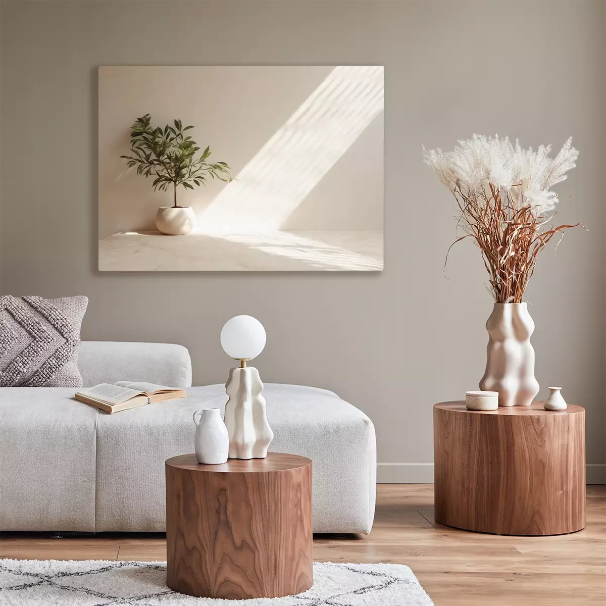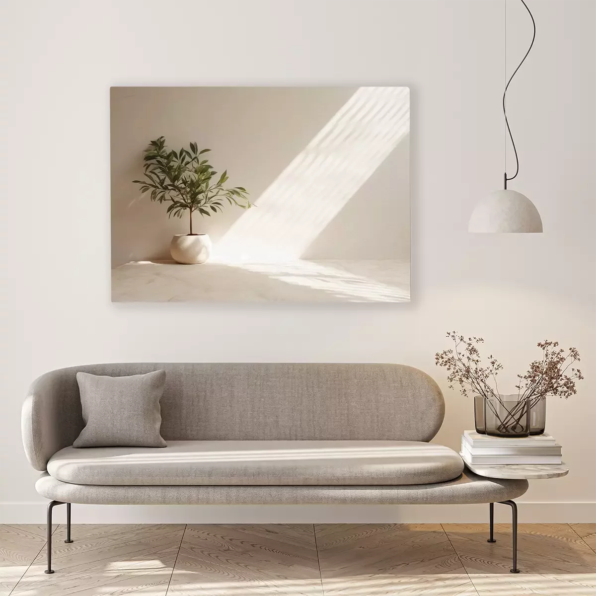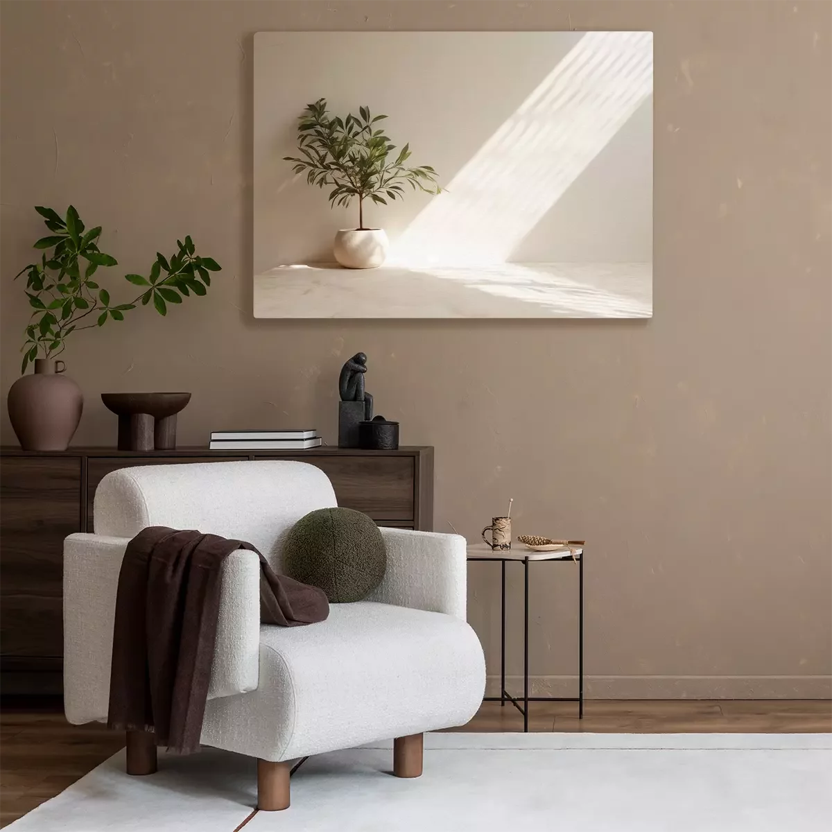 Een groene olijfboom in een beige pot