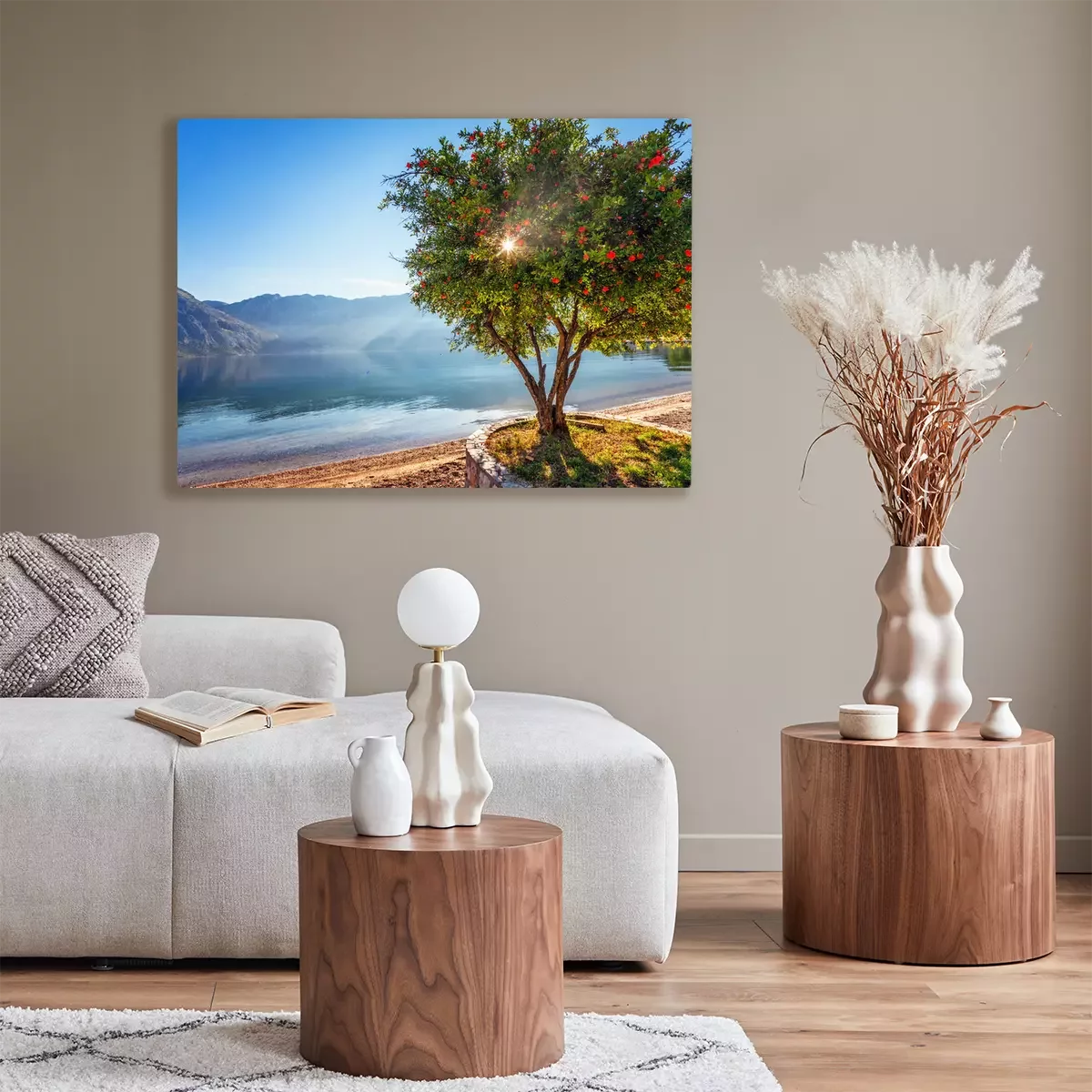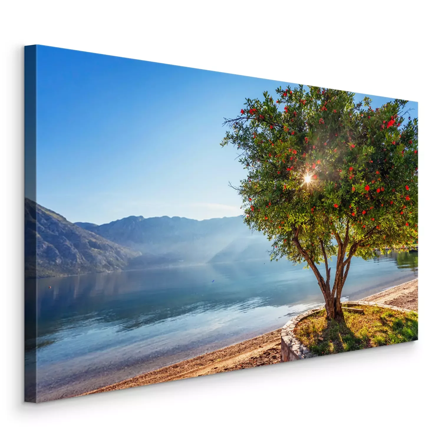 Canvas Een grote boom tegen de achtergrond van de bergen