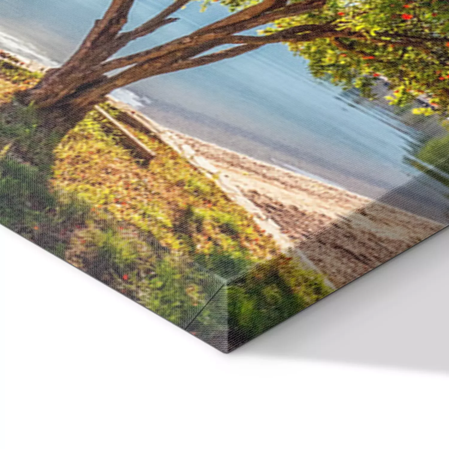 De print wordt aangebracht op hoogwaardig canvas dat op een schildersweefgetouw (spieraam) wordt gespannen. Omdat de print de zijranden bedekt, hoeft het ontwerp niet met een extra kader te worden omlijst. Wij raden ook composities aan die uit meerdere foto's bestaan en zo een coherente compositie vormen.