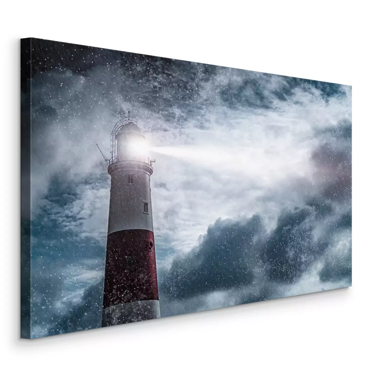 Canvas: Een grote vuurtoren op een stormachtige nacht