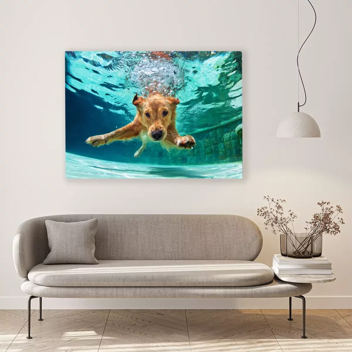 De print wordt aangebracht op hoogwaardig canvas dat op een schildersweefgetouw (spieraam) wordt gespannen. Omdat de print de zijranden bedekt, hoeft het ontwerp niet met een extra kader te worden omlijst. Wij raden ook composities aan die uit meerdere foto's bestaan en zo een coherente compositie vormen.