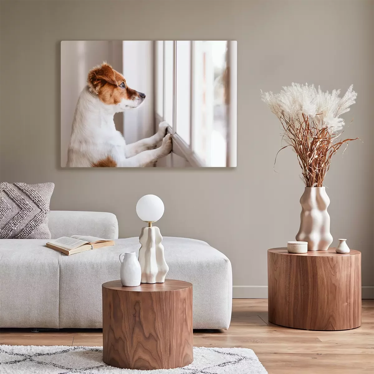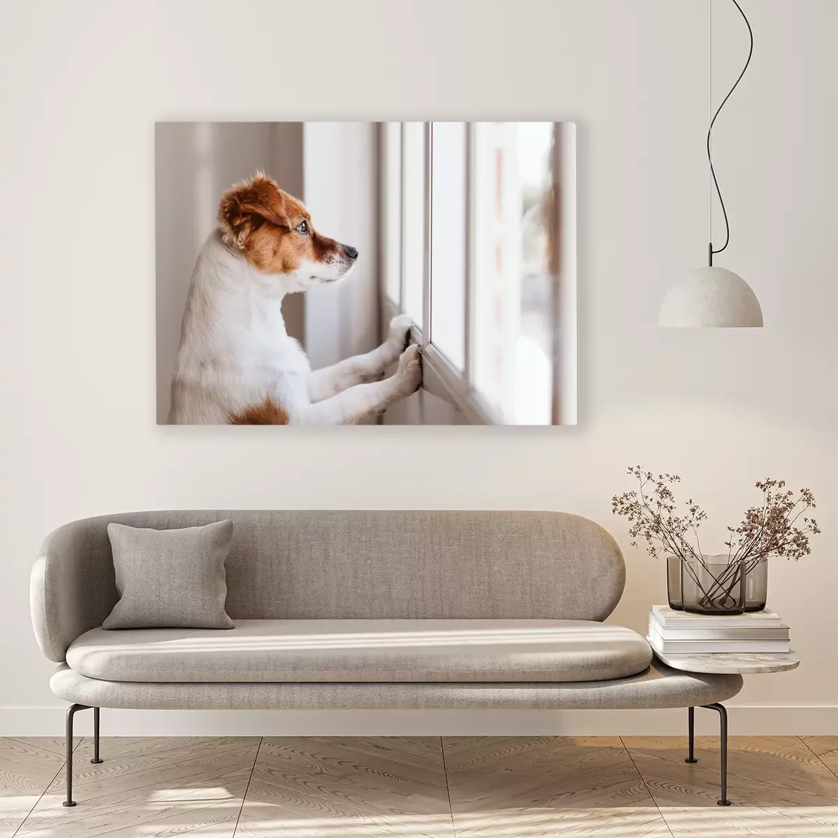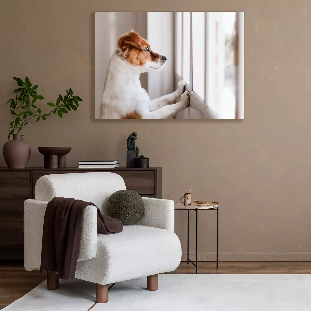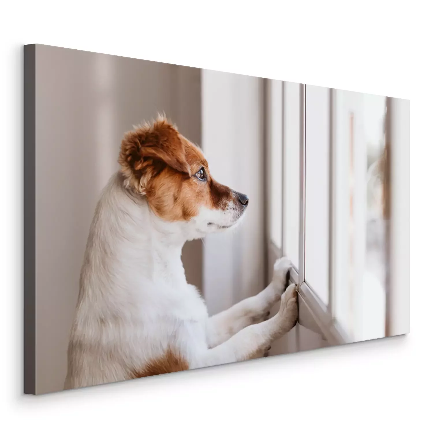 Canvas: Een hond die uit het raam kijkt