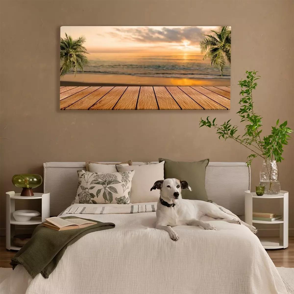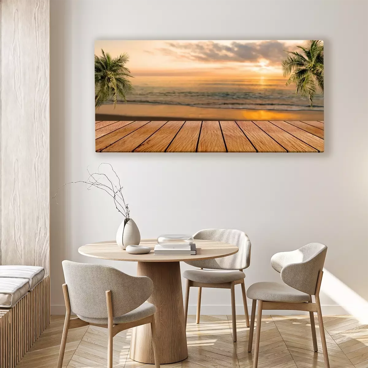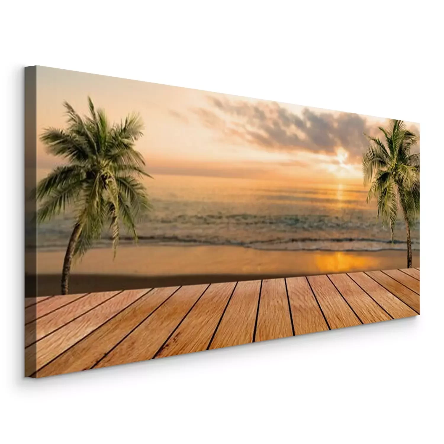 Canvas: Een houten platform met een strand op de achtergrond