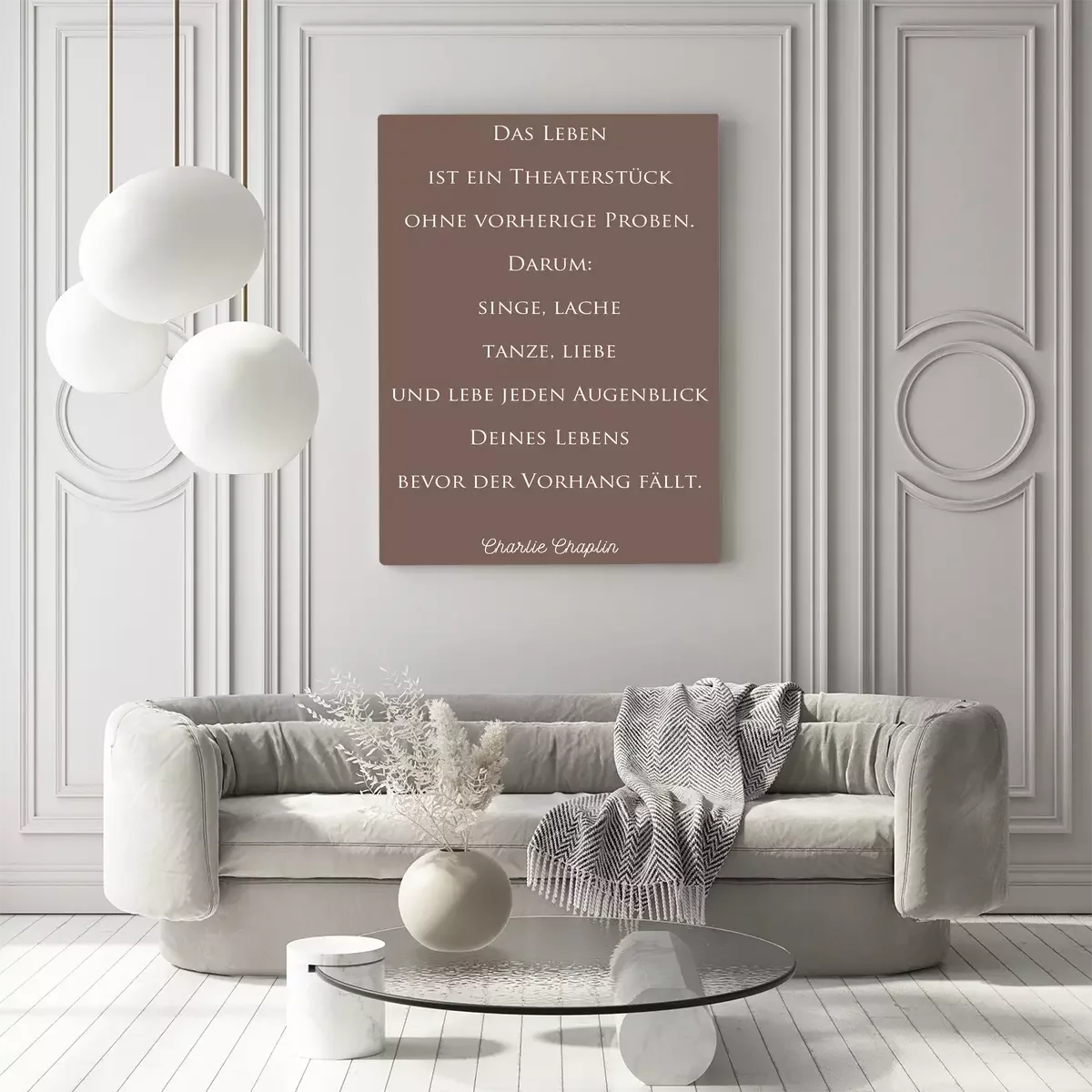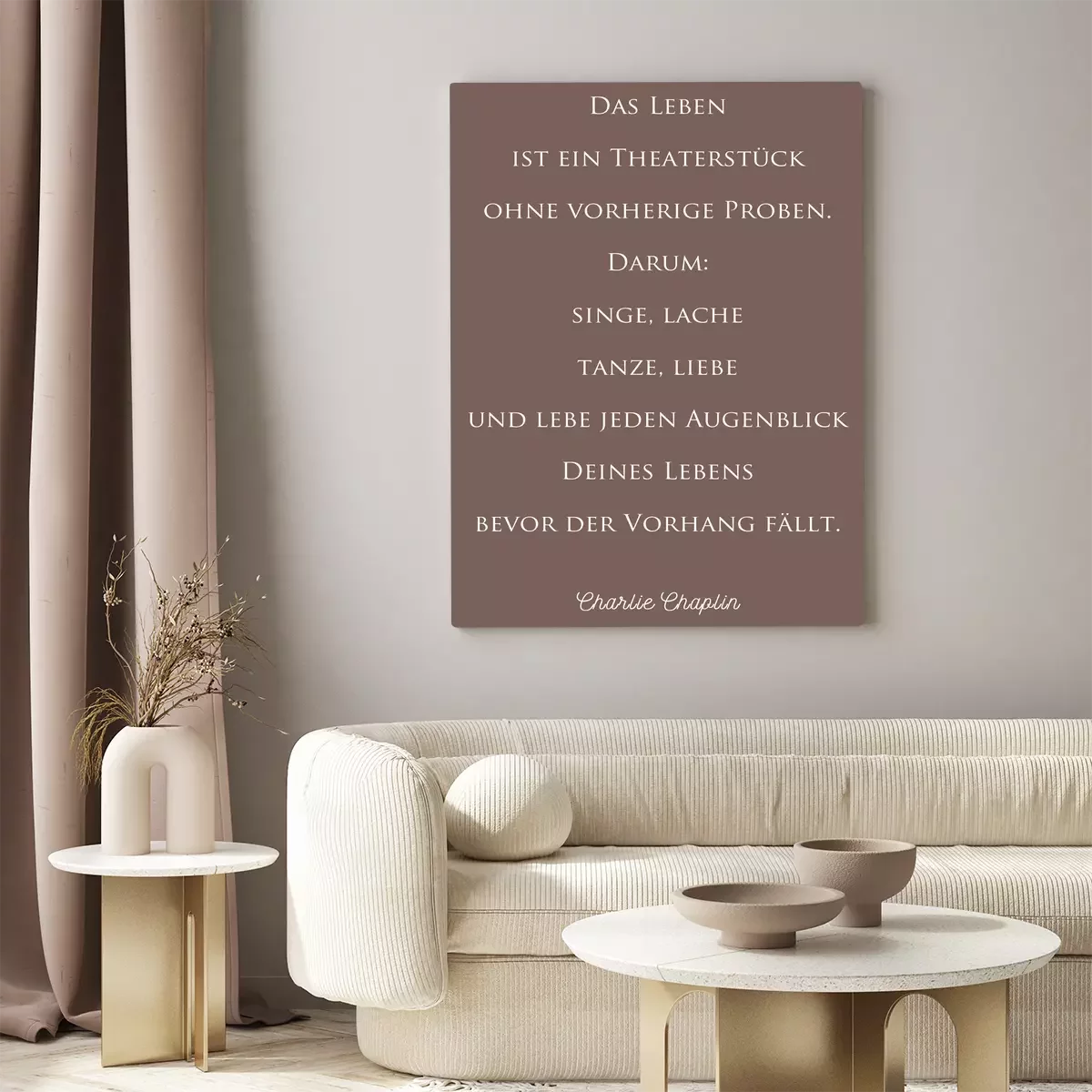 Een inscriptie over geluk en het moment op een bruine achtergrond