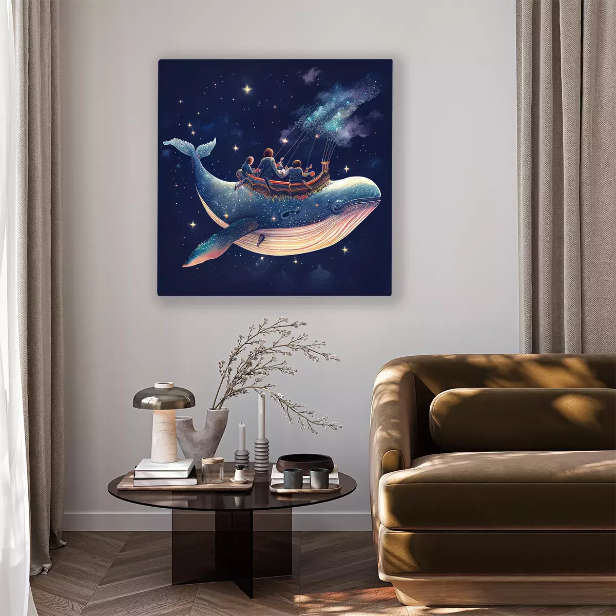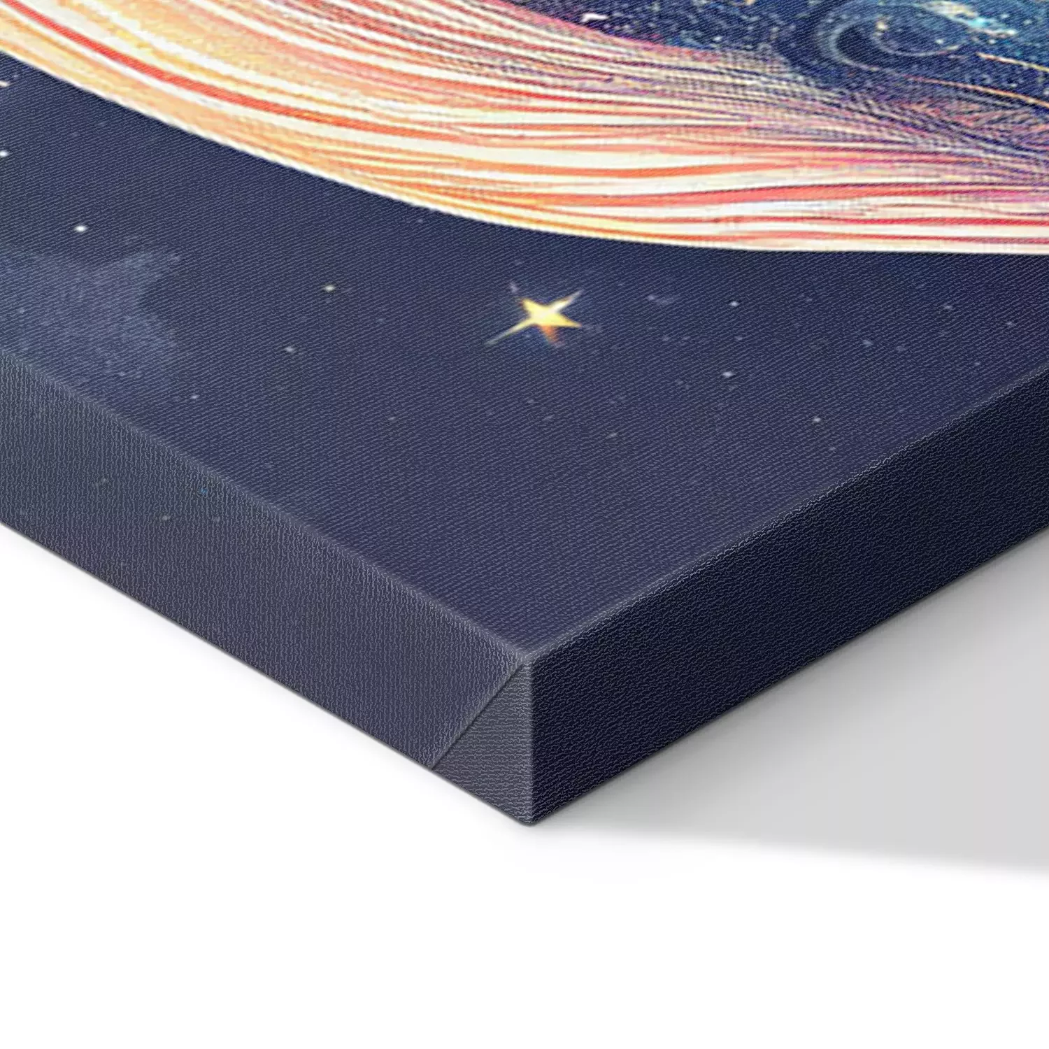 De print wordt aangebracht op hoogwaardig canvas dat op een schildersweefgetouw (spieraam) wordt gespannen. Omdat de print de zijranden bedekt, hoeft het ontwerp niet met een extra kader te worden omlijst. Wij raden ook composities aan die uit meerdere foto's bestaan en zo een coherente compositie vormen.
