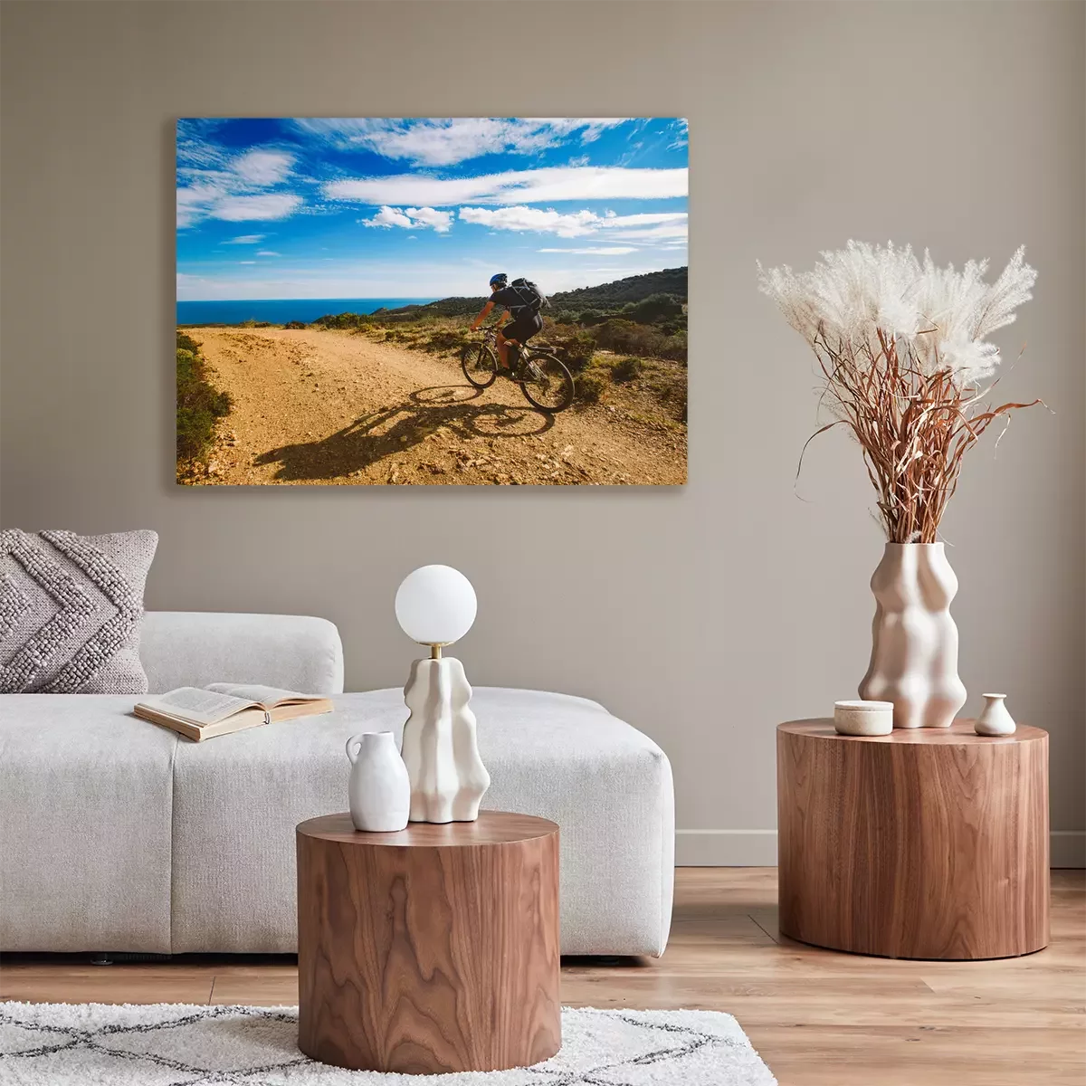 De print wordt aangebracht op hoogwaardig canvas dat op een schildersweefgetouw (spieraam) wordt gespannen. Omdat de print de zijranden bedekt, hoeft het ontwerp niet met een extra kader te worden omlijst. Wij raden ook composities aan die uit meerdere foto's bestaan en zo een coherente compositie vormen.