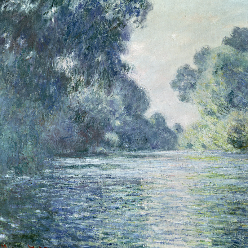 Canvas: Een kalme rivierstroom omgeven door weelderige vegetatie