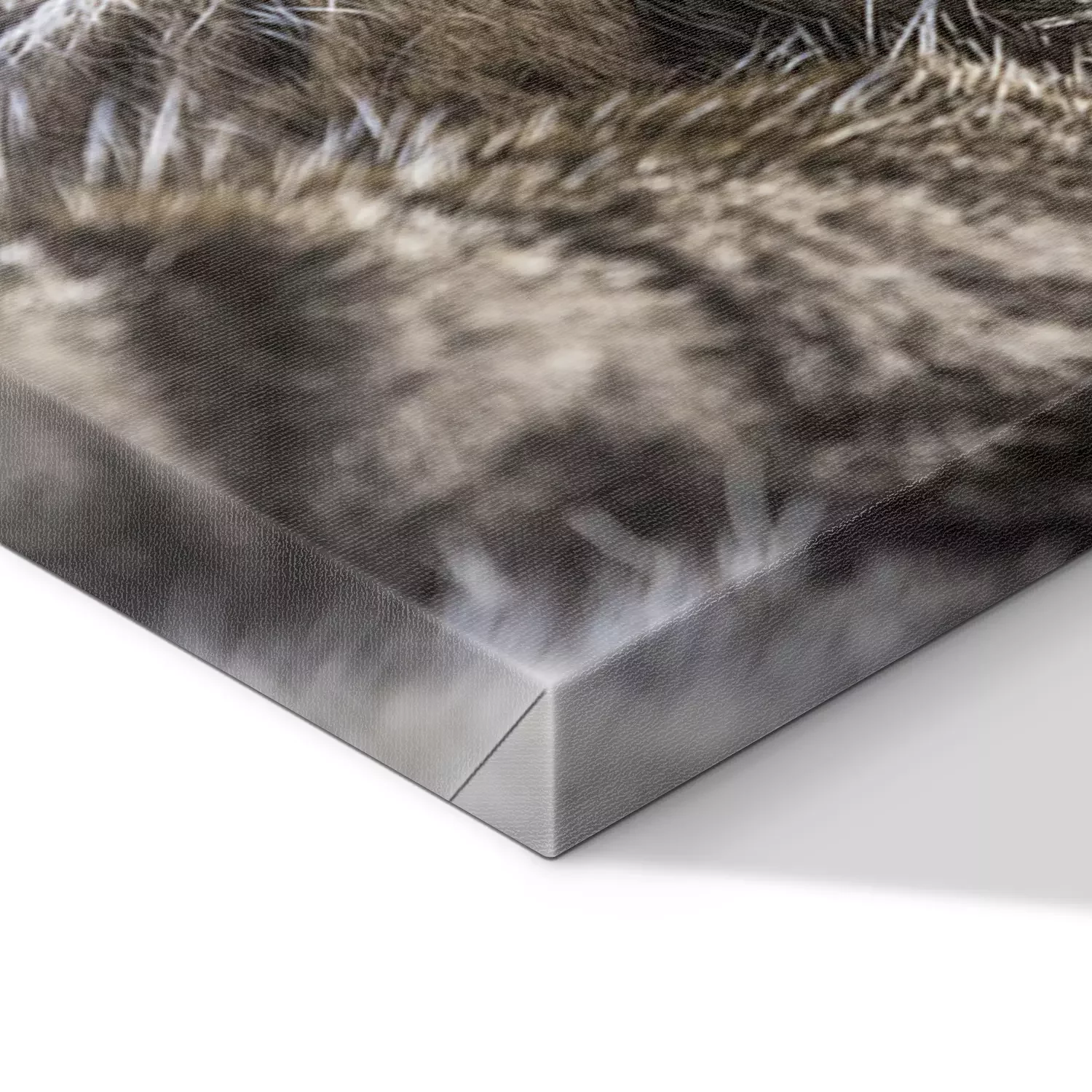 De print wordt aangebracht op hoogwaardig canvas dat op een schildersweefgetouw (spieraam) wordt gespannen. Omdat de print de zijranden bedekt, hoeft het ontwerp niet met een extra kader te worden omlijst. Wij raden ook composities aan die uit meerdere foto's bestaan en zo een coherente compositie vormen.