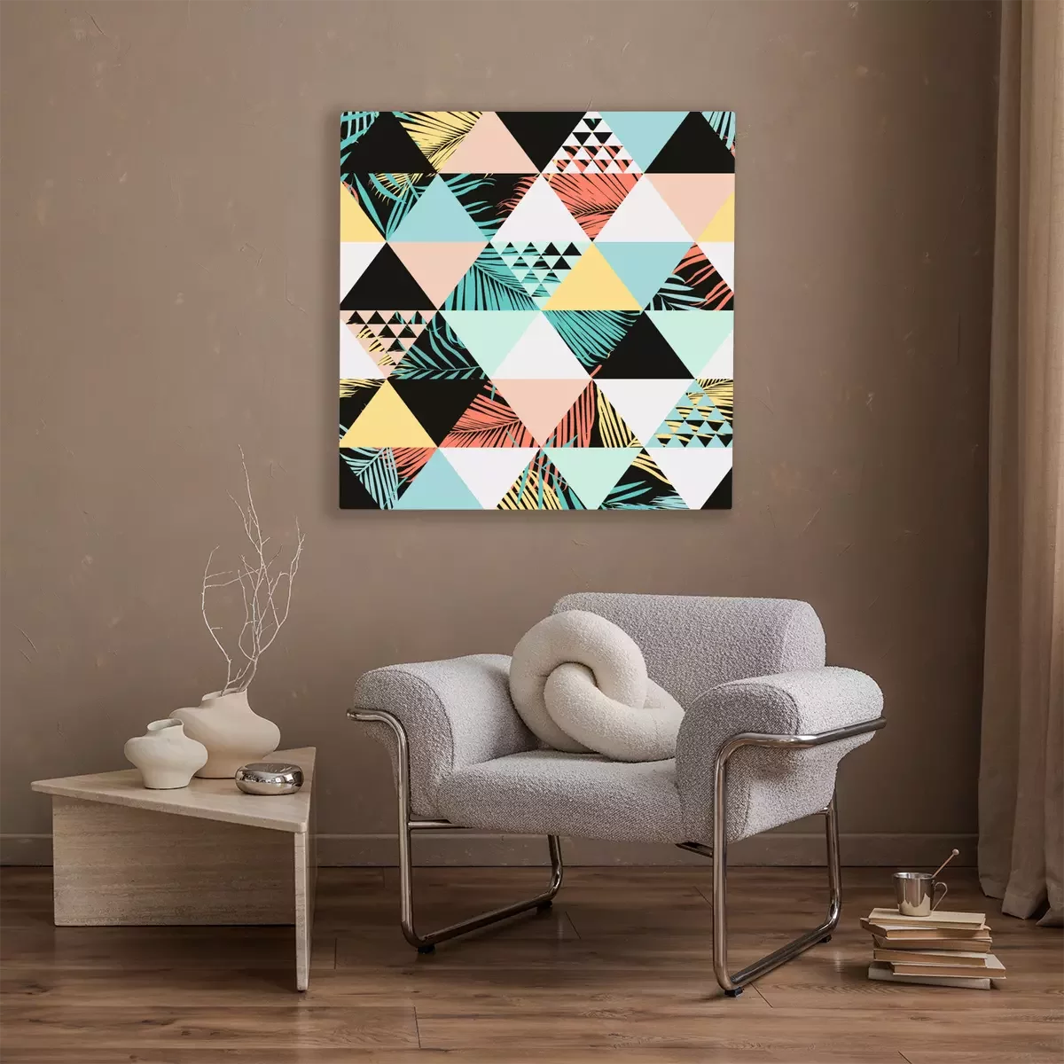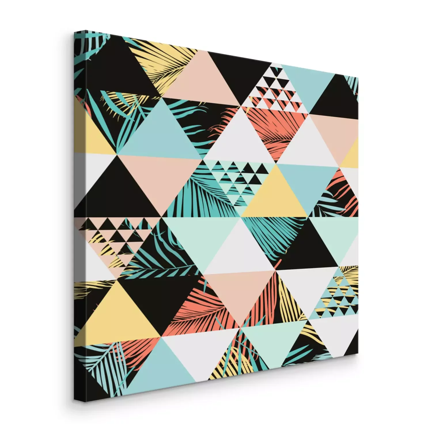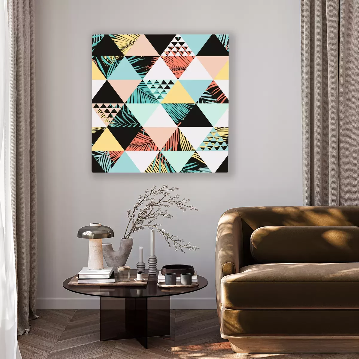 Canvas: Een kleurrijk motief van driehoeken en bladeren