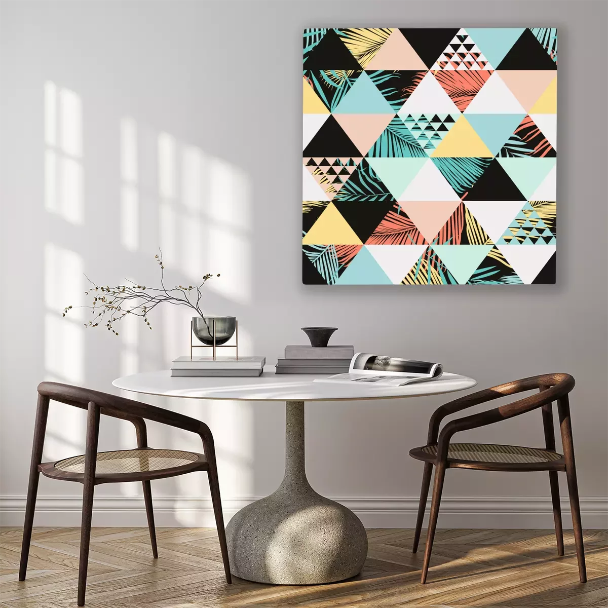Canvas Een kleurrijk motief van driehoeken en bladeren