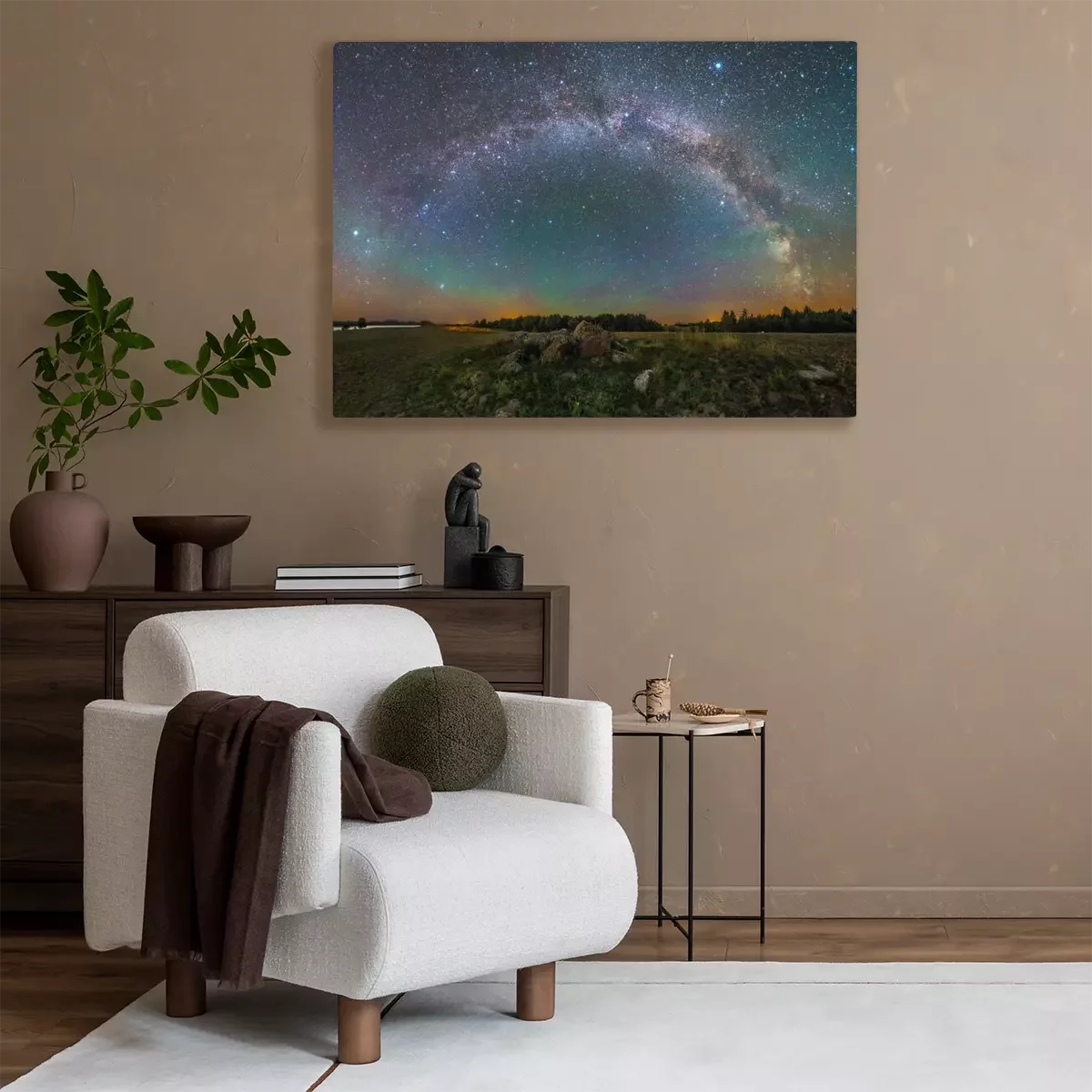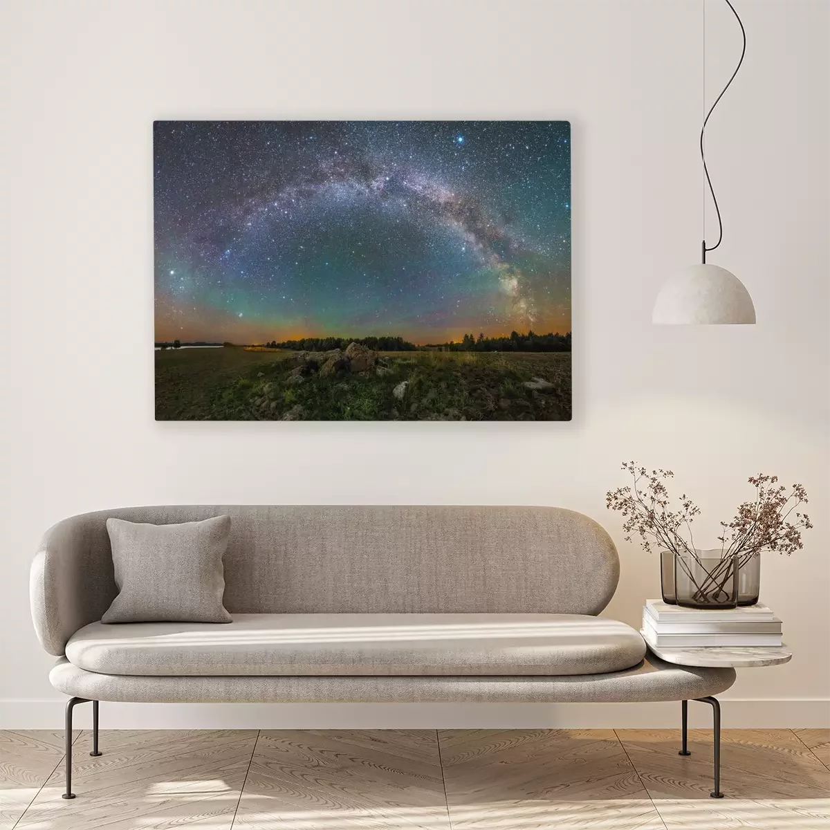 Canvas: Een kleurrijk sterrenstelsel boven de horizon