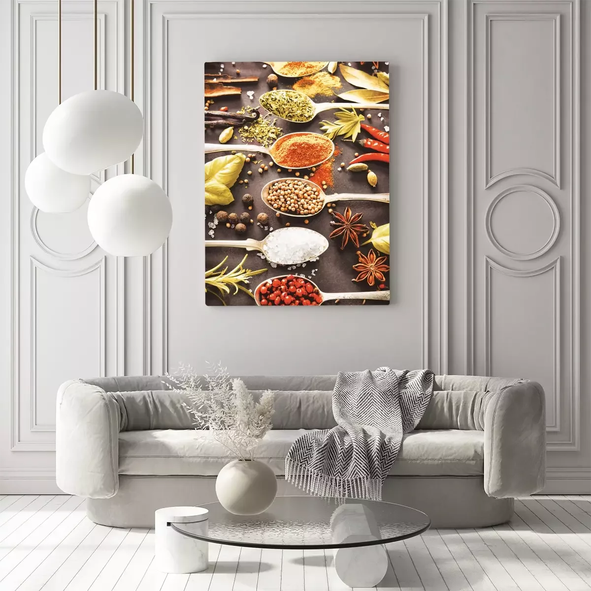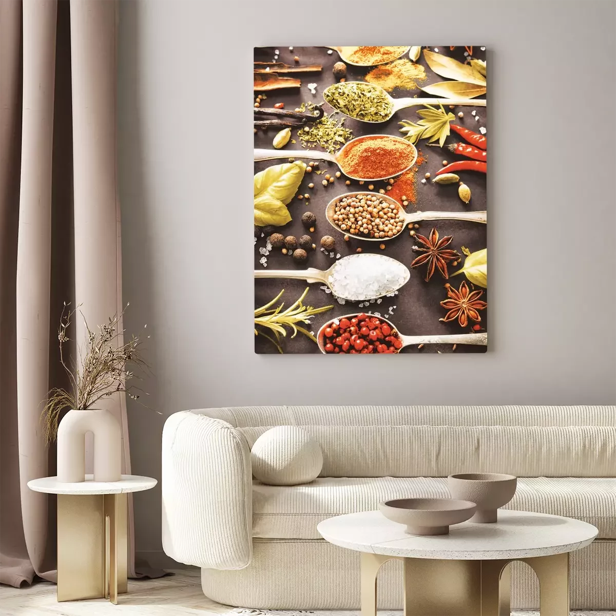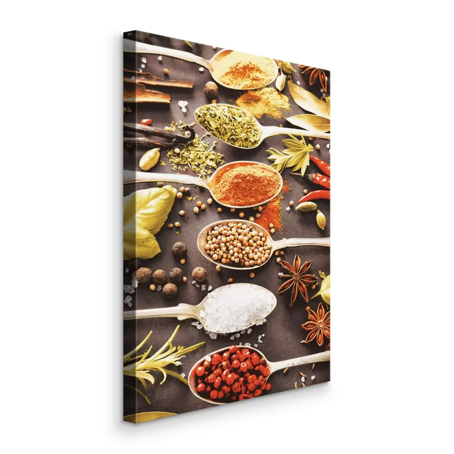 Een kleurrijke compositie van kruiden op lepels