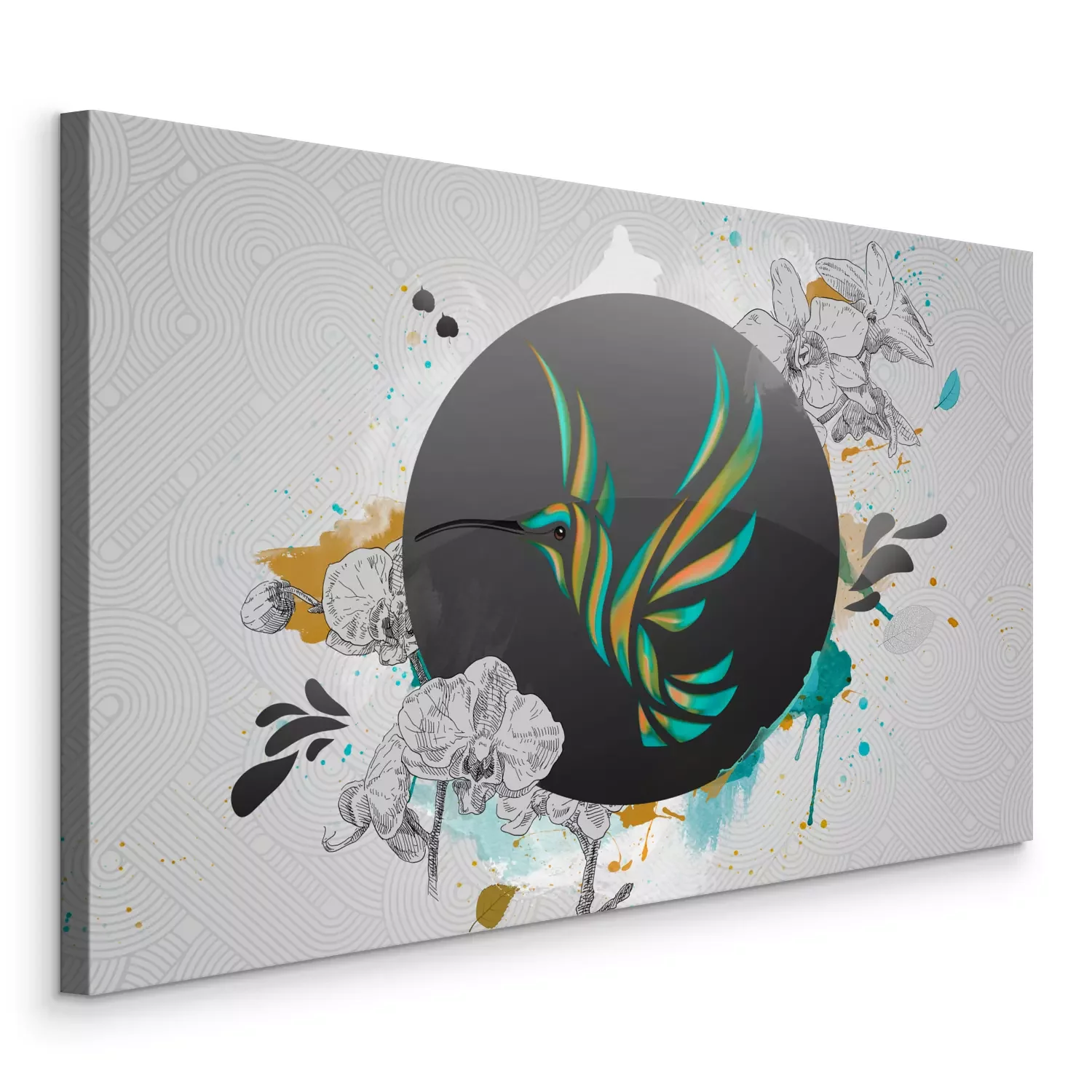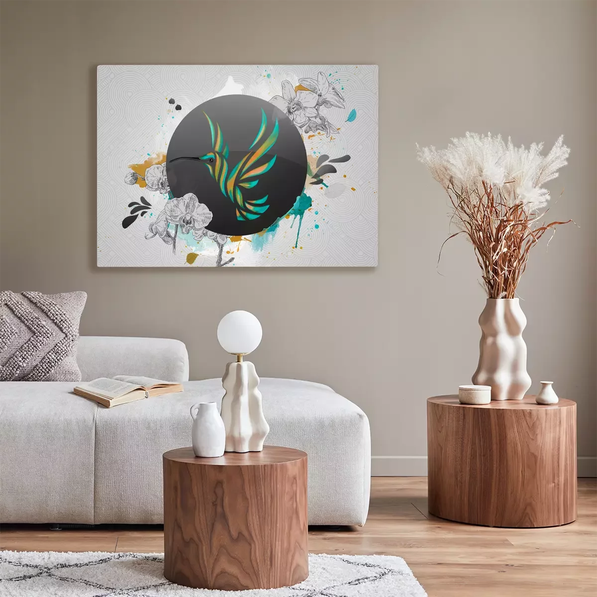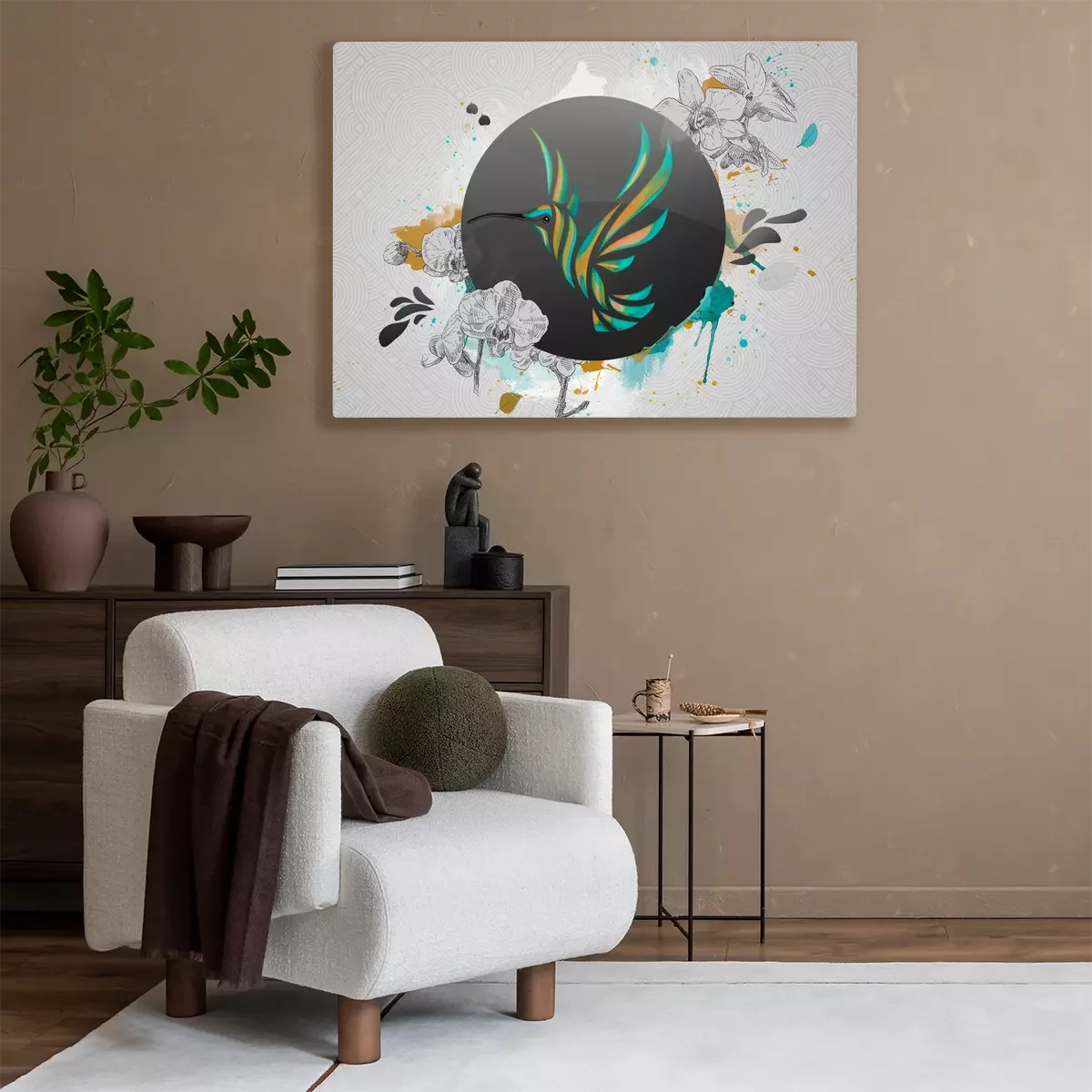 Een kleurrijke kolibrie op een decoratieve achtergrond