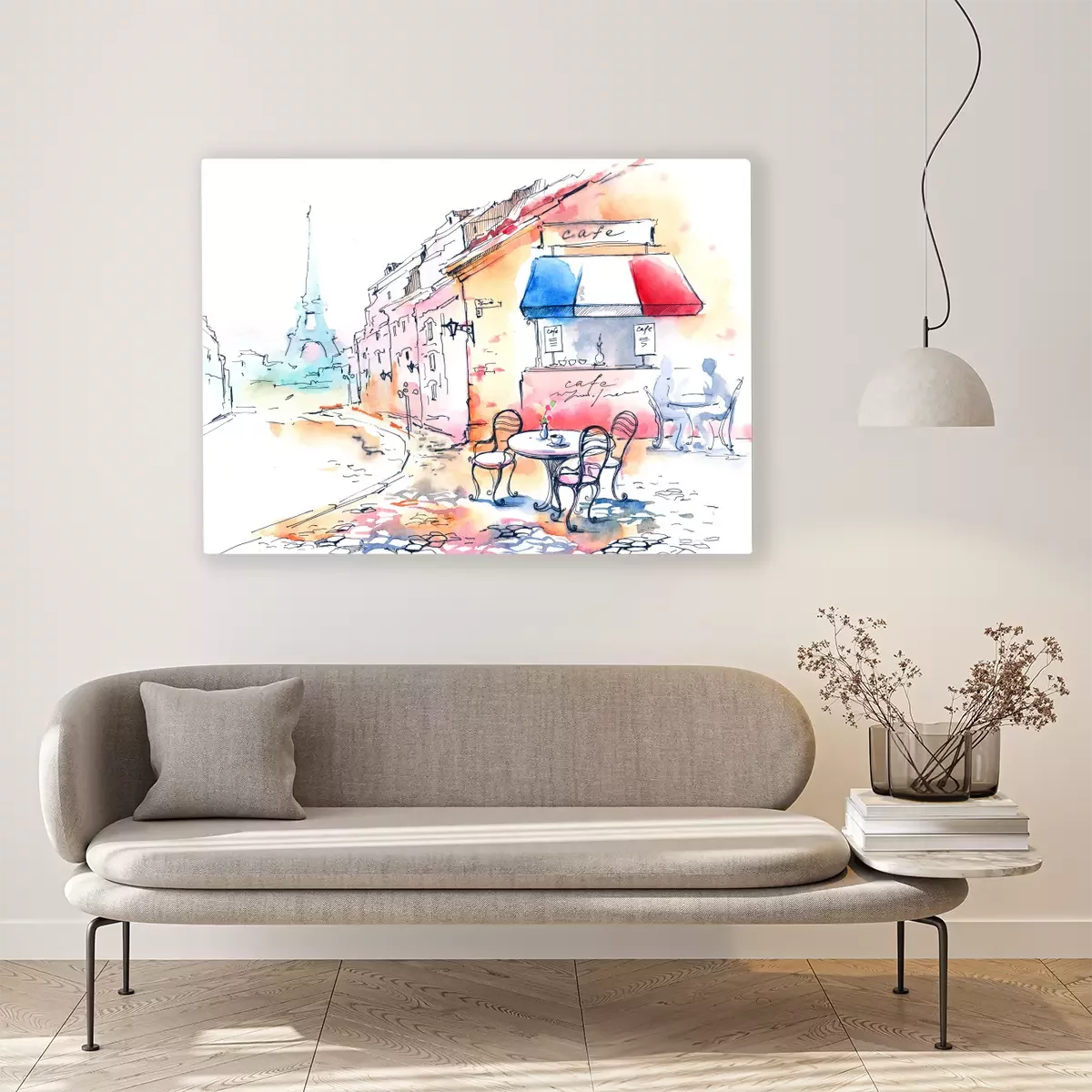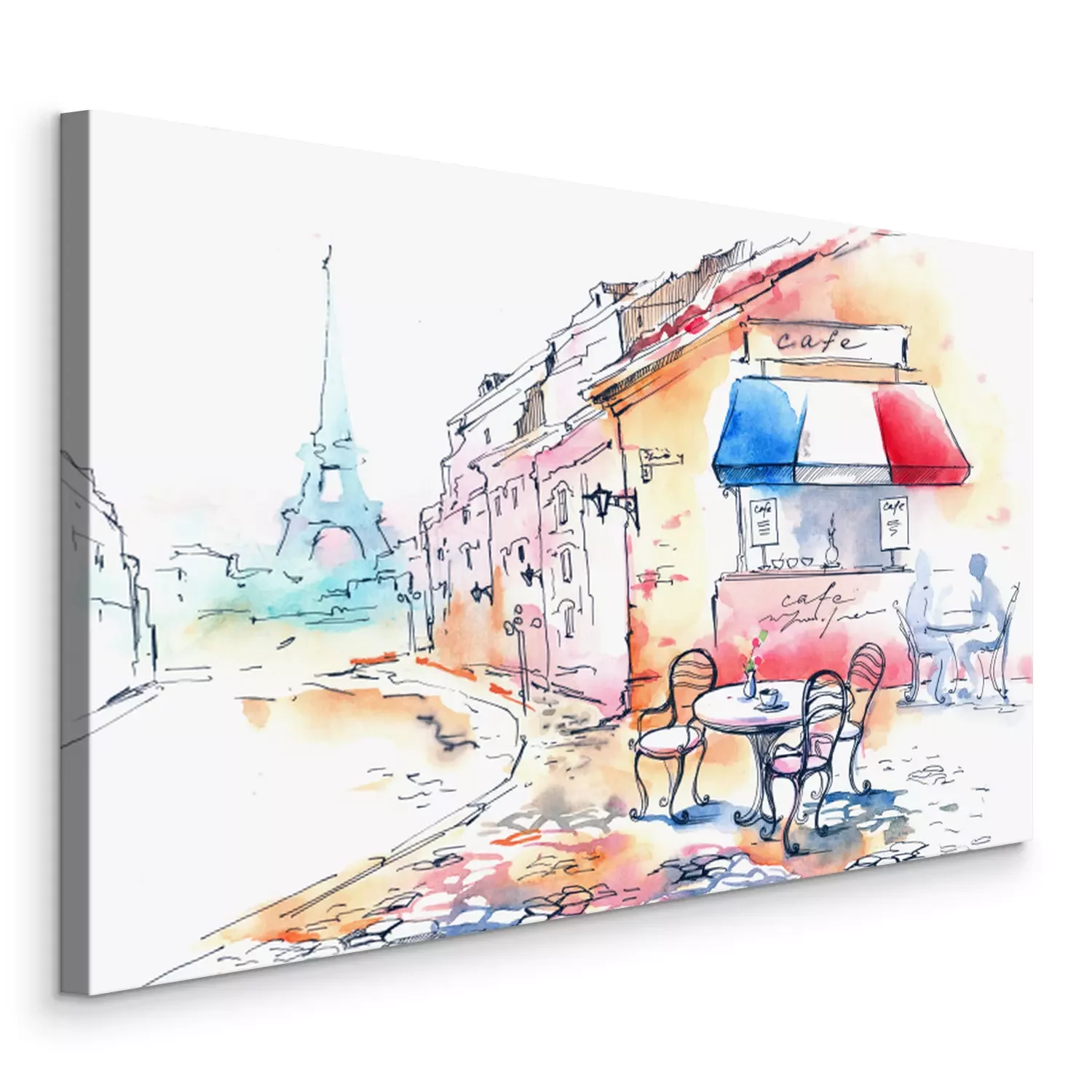 Canvas Een kleurrijke Parijse straat beschilderd met waterverf
