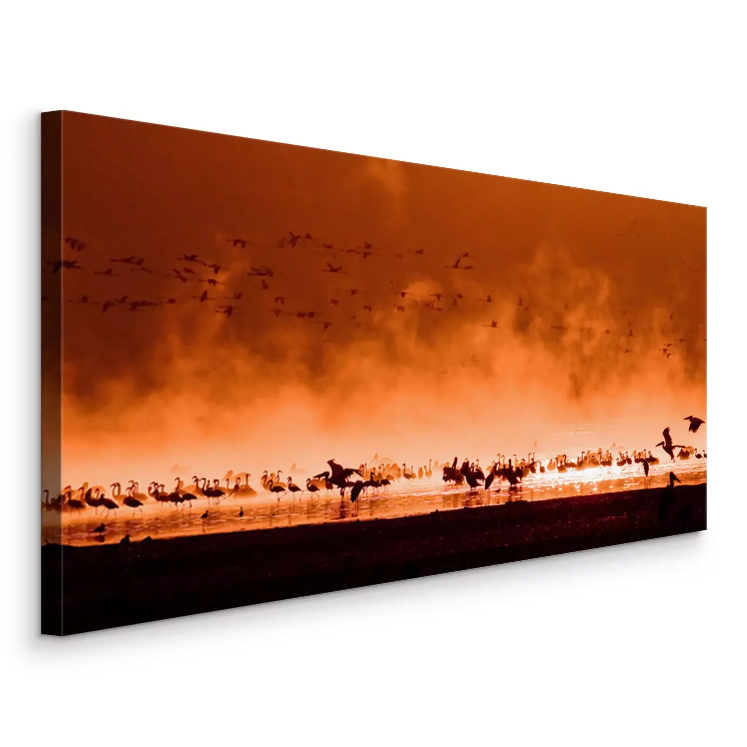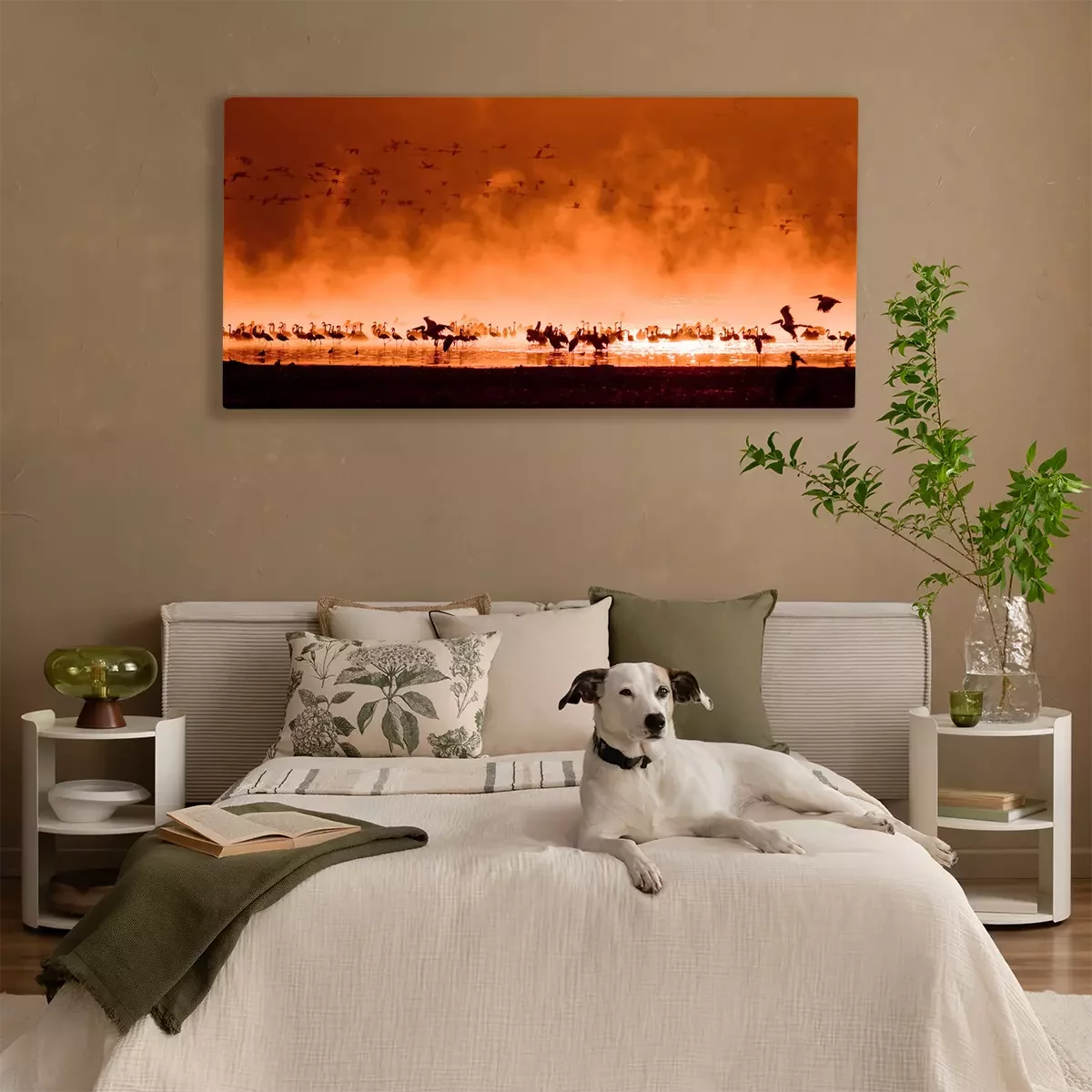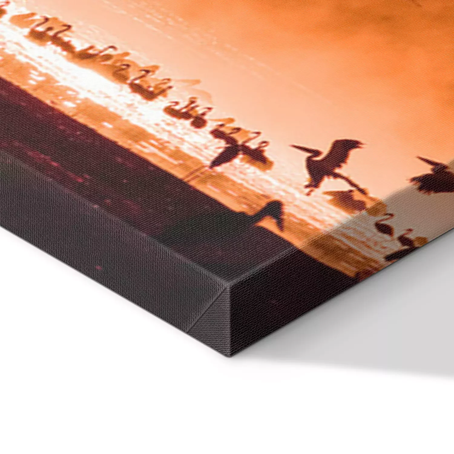 De print wordt aangebracht op hoogwaardig canvas dat op een schildersweefgetouw (spieraam) wordt gespannen. Omdat de print de zijranden bedekt, hoeft het ontwerp niet met een extra kader te worden omlijst. Wij raden ook composities aan die uit meerdere foto's bestaan en zo een coherente compositie vormen.
