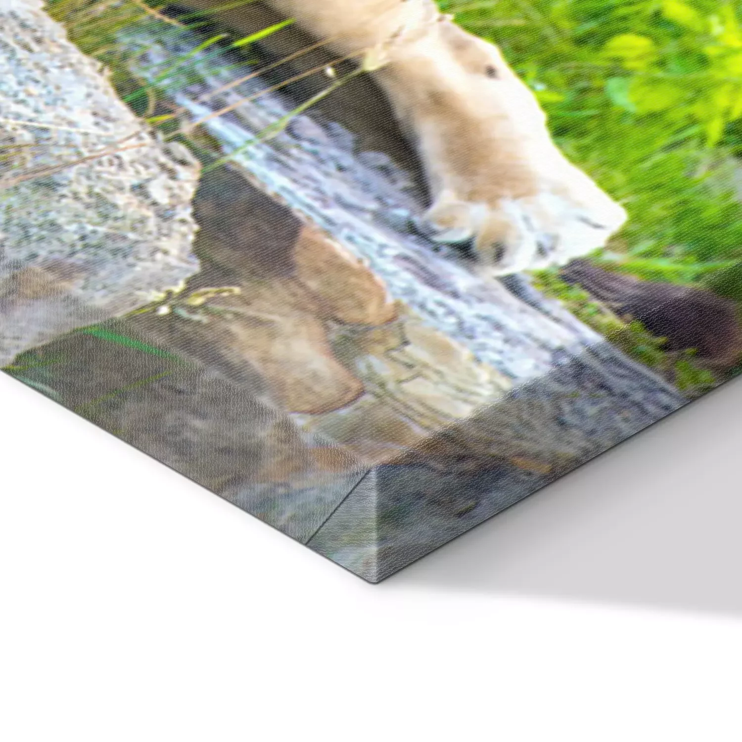 De print wordt aangebracht op hoogwaardig canvas dat op een schildersweefgetouw (spieraam) wordt gespannen. Omdat de print de zijranden bedekt, hoeft het ontwerp niet met een extra kader te worden omlijst. Wij raden ook composities aan die uit meerdere foto's bestaan en zo een coherente compositie vormen.