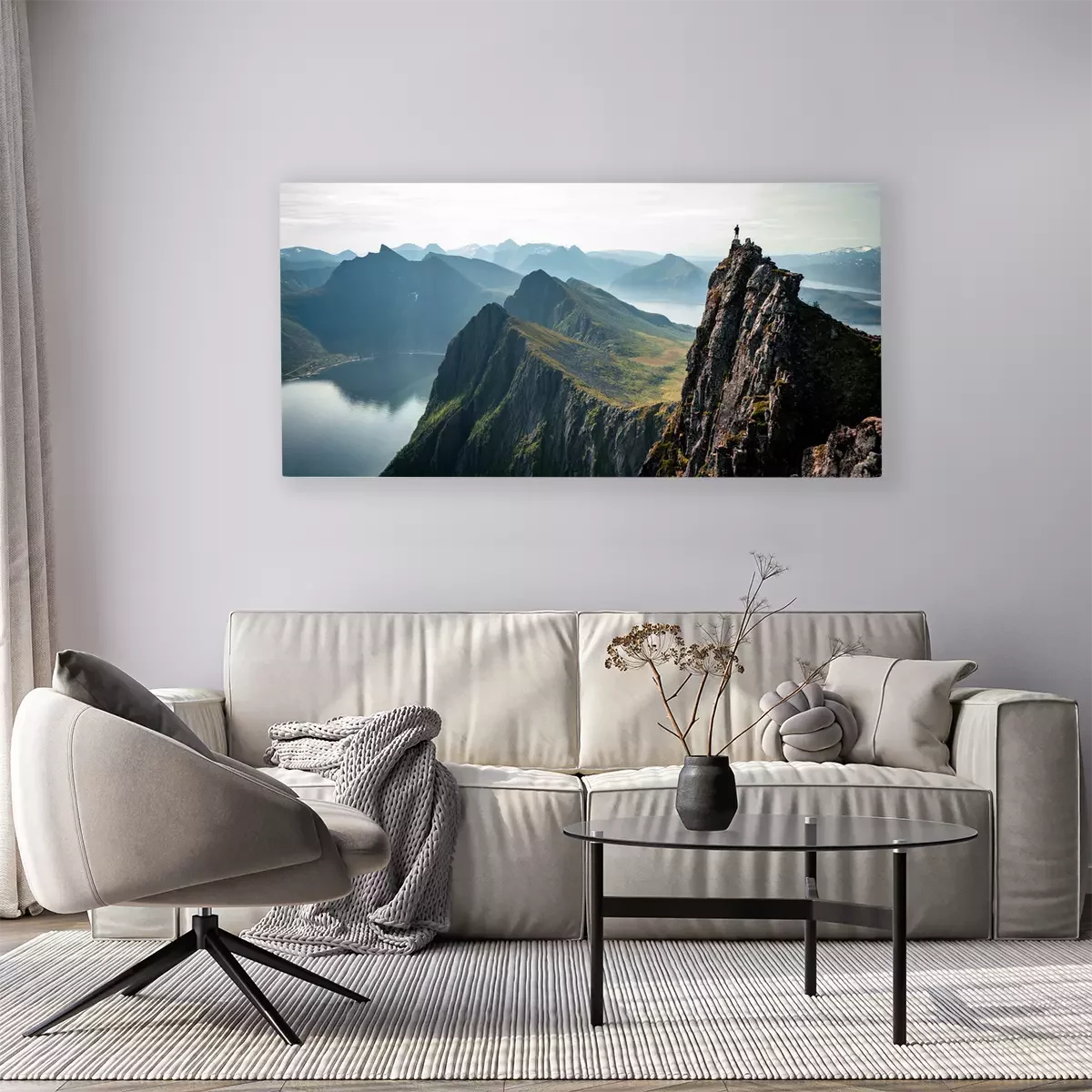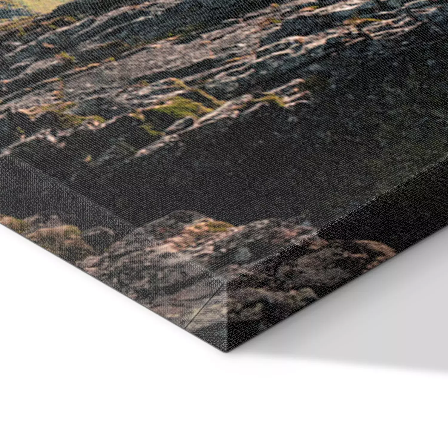 De print wordt aangebracht op hoogwaardig canvas dat op een schildersweefgetouw (spieraam) wordt gespannen. Omdat de print de zijranden bedekt, hoeft het ontwerp niet met een extra kader te worden omlijst. Wij raden ook composities aan die uit meerdere foto's bestaan en zo een coherente compositie vormen.