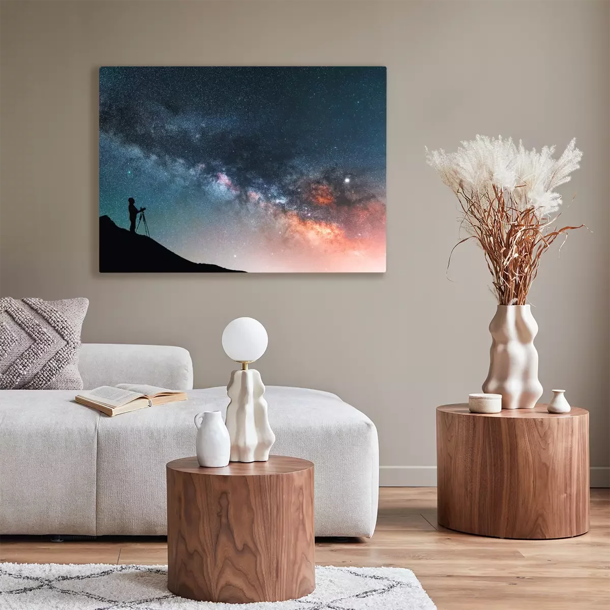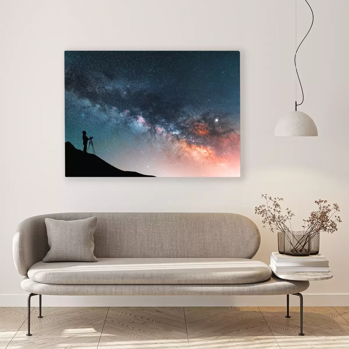 De print wordt aangebracht op hoogwaardig canvas dat op een schildersweefgetouw (spieraam) wordt gespannen. Omdat de print de zijranden bedekt, hoeft het ontwerp niet met een extra kader te worden omlijst. Wij raden ook composities aan die uit meerdere foto's bestaan en zo een coherente compositie vormen.