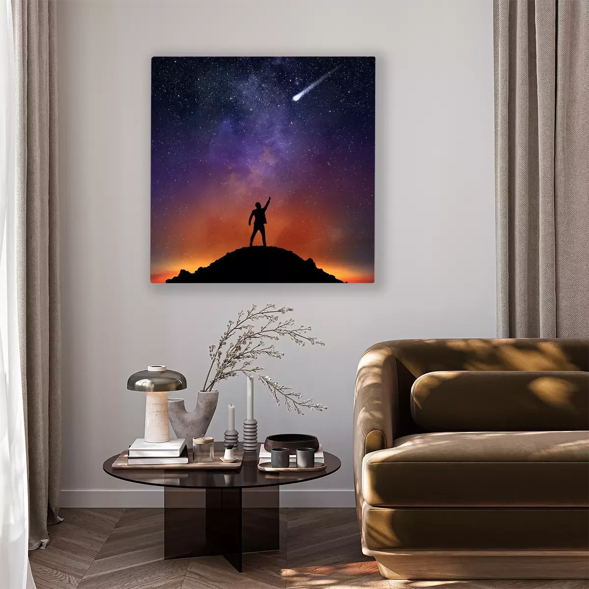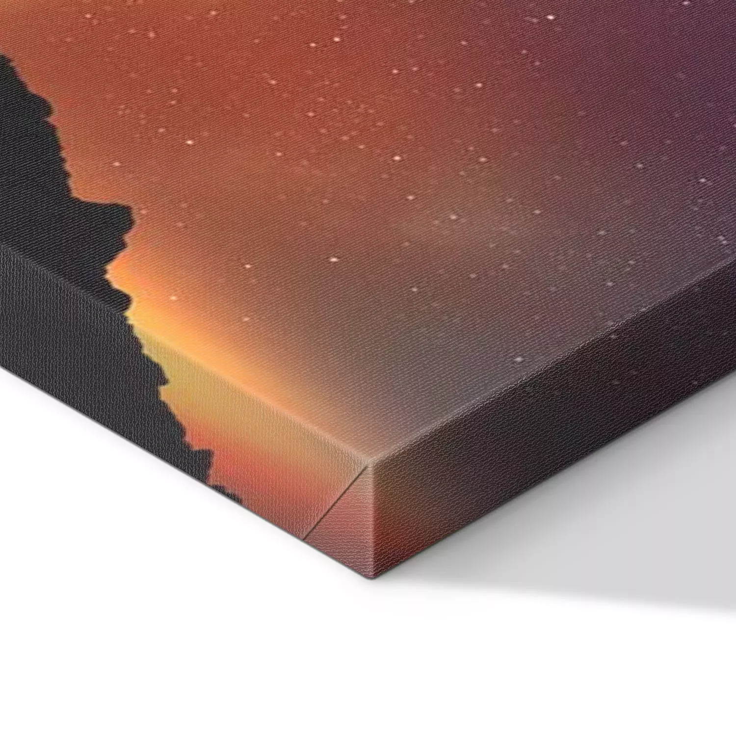 De print wordt aangebracht op hoogwaardig canvas dat op een schildersweefgetouw (spieraam) wordt gespannen. Omdat de print de zijranden bedekt, hoeft het ontwerp niet met een extra kader te worden omlijst. Wij raden ook composities aan die uit meerdere foto's bestaan en zo een coherente compositie vormen.