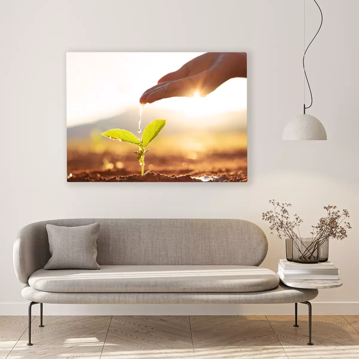 De print wordt aangebracht op hoogwaardig canvas dat op een schildersweefgetouw (spieraam) wordt gespannen. Omdat de print de zijranden bedekt, hoeft het ontwerp niet met een extra kader te worden omlijst. Wij raden ook composities aan die uit meerdere foto's bestaan en zo een coherente compositie vormen.