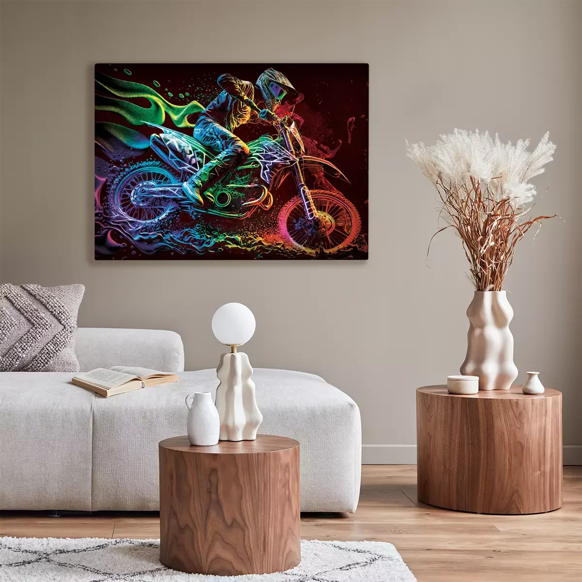 Een motorcoureur in neonlichten