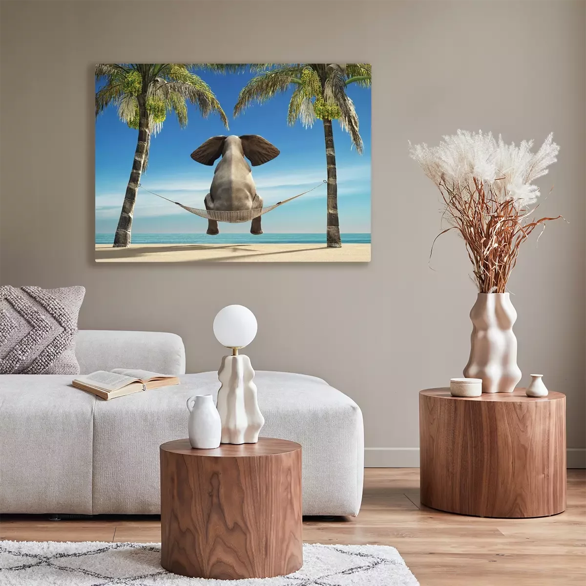 Canvas: Een olifant zit in een hangmat