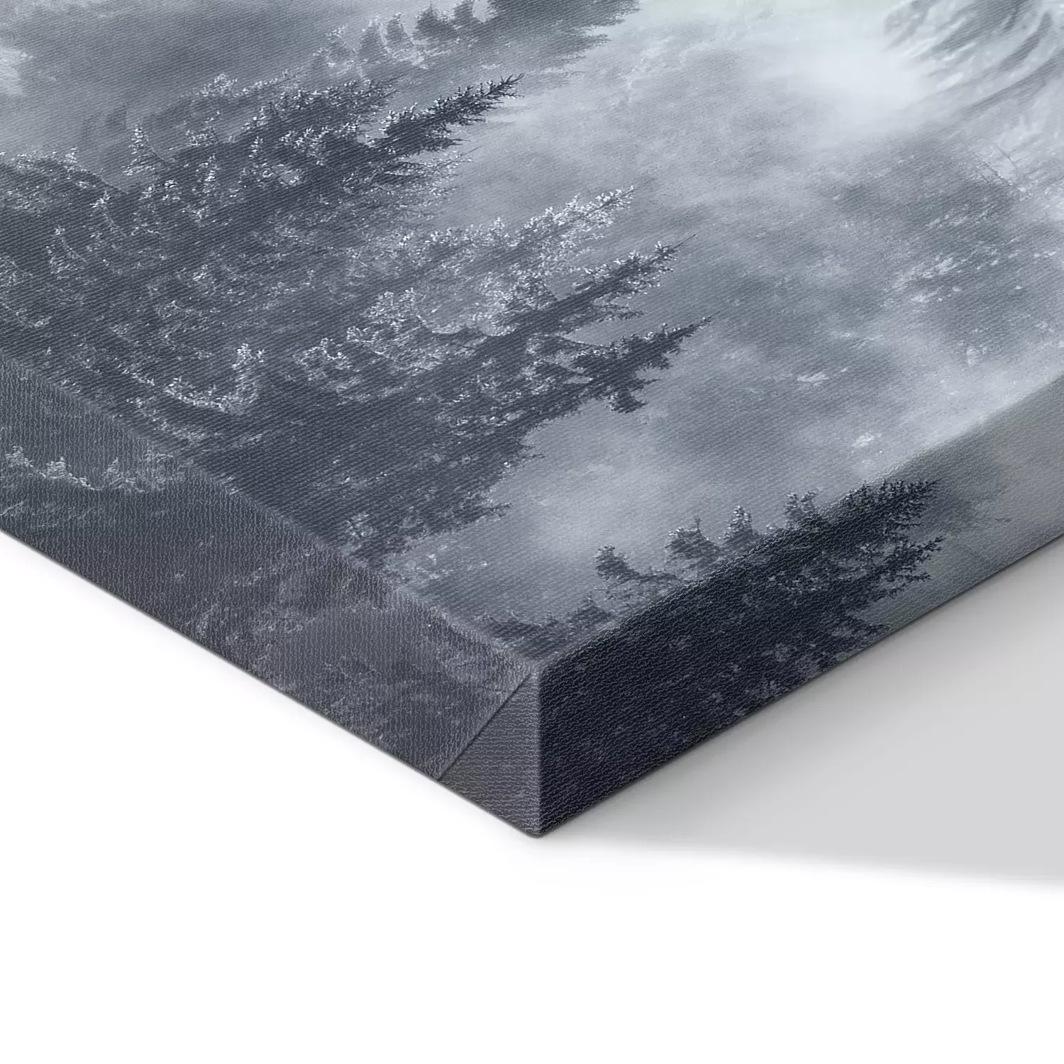 De print wordt aangebracht op hoogwaardig canvas dat op een schildersweefgetouw (spieraam) wordt gespannen. Omdat de print de zijranden bedekt, hoeft het ontwerp niet met een extra kader te worden omlijst. Wij raden ook composities aan die uit meerdere foto's bestaan en zo een coherente compositie vormen.