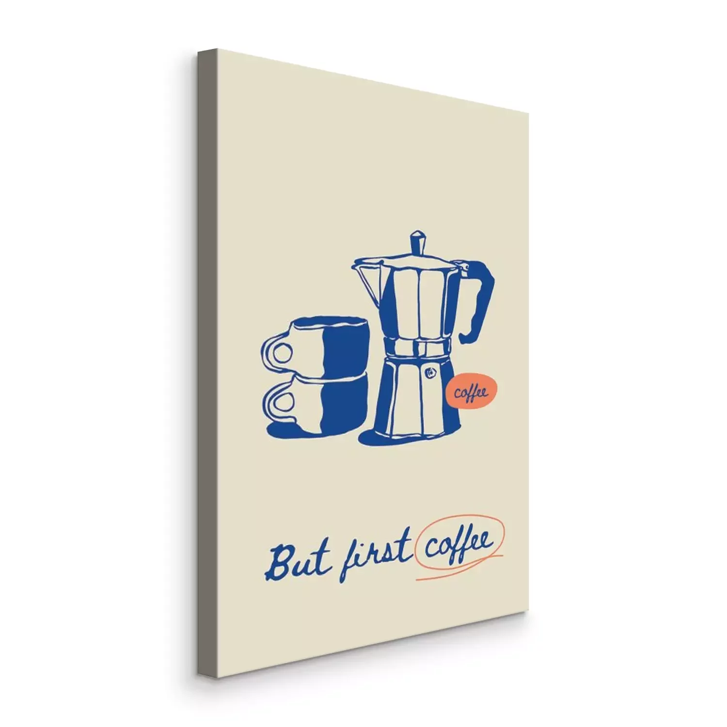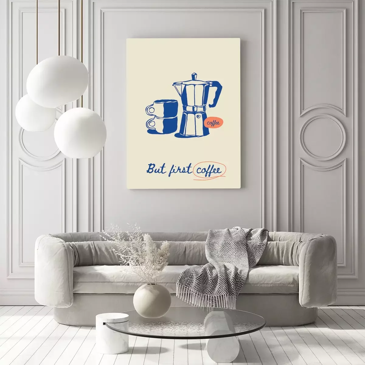 Canvas: Een porseleinen kopje aromatische koffie en een koffiepot