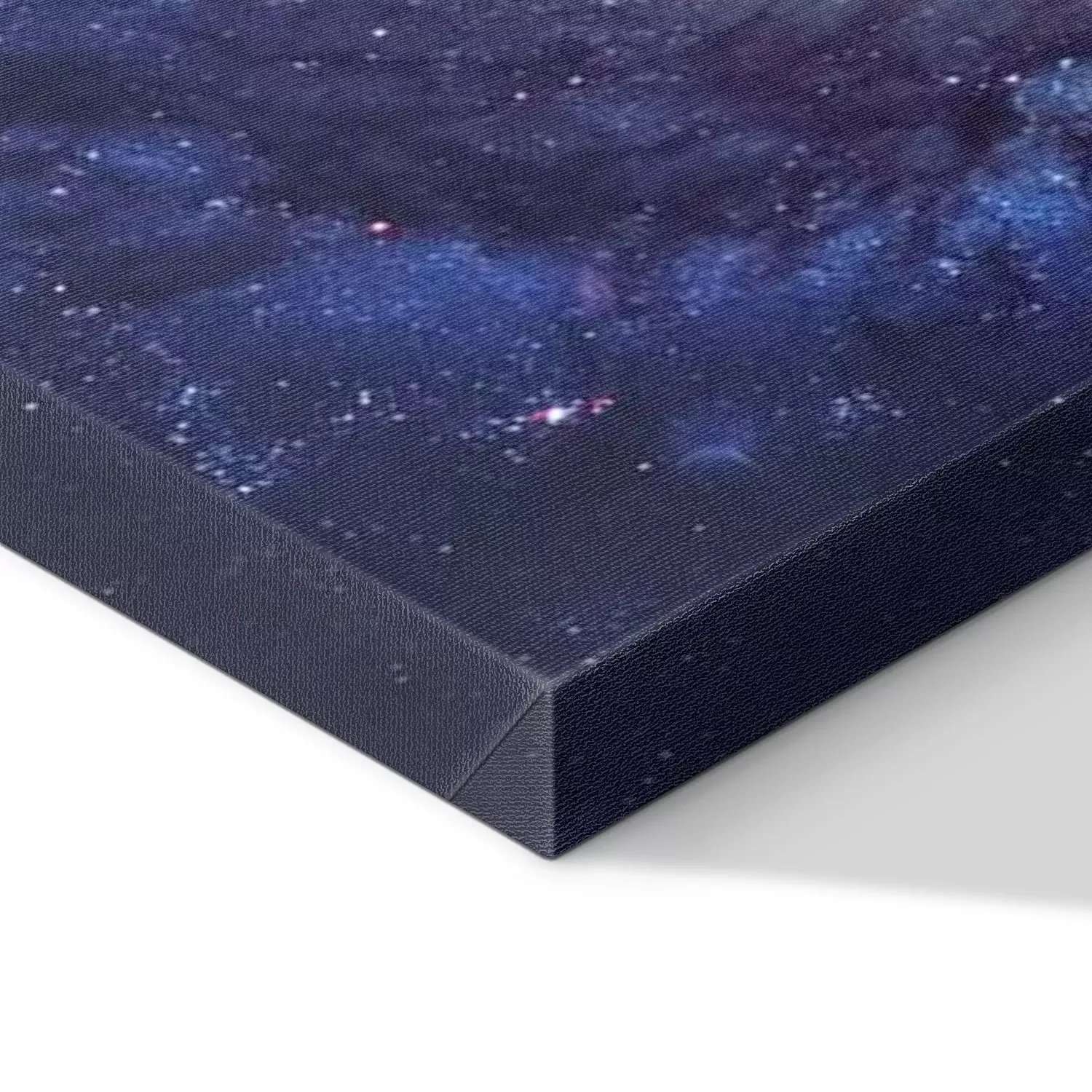 De print wordt aangebracht op hoogwaardig canvas dat op een schildersweefgetouw (spieraam) wordt gespannen. Omdat de print de zijranden bedekt, hoeft het ontwerp niet met een extra kader te worden omlijst. Wij raden ook composities aan die uit meerdere foto's bestaan en zo een coherente compositie vormen.