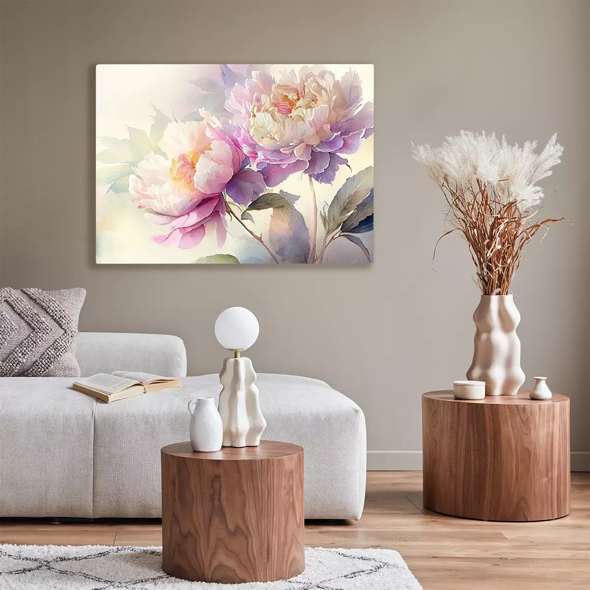 Canvas: Een romantisch boeket van twee pioenrozen