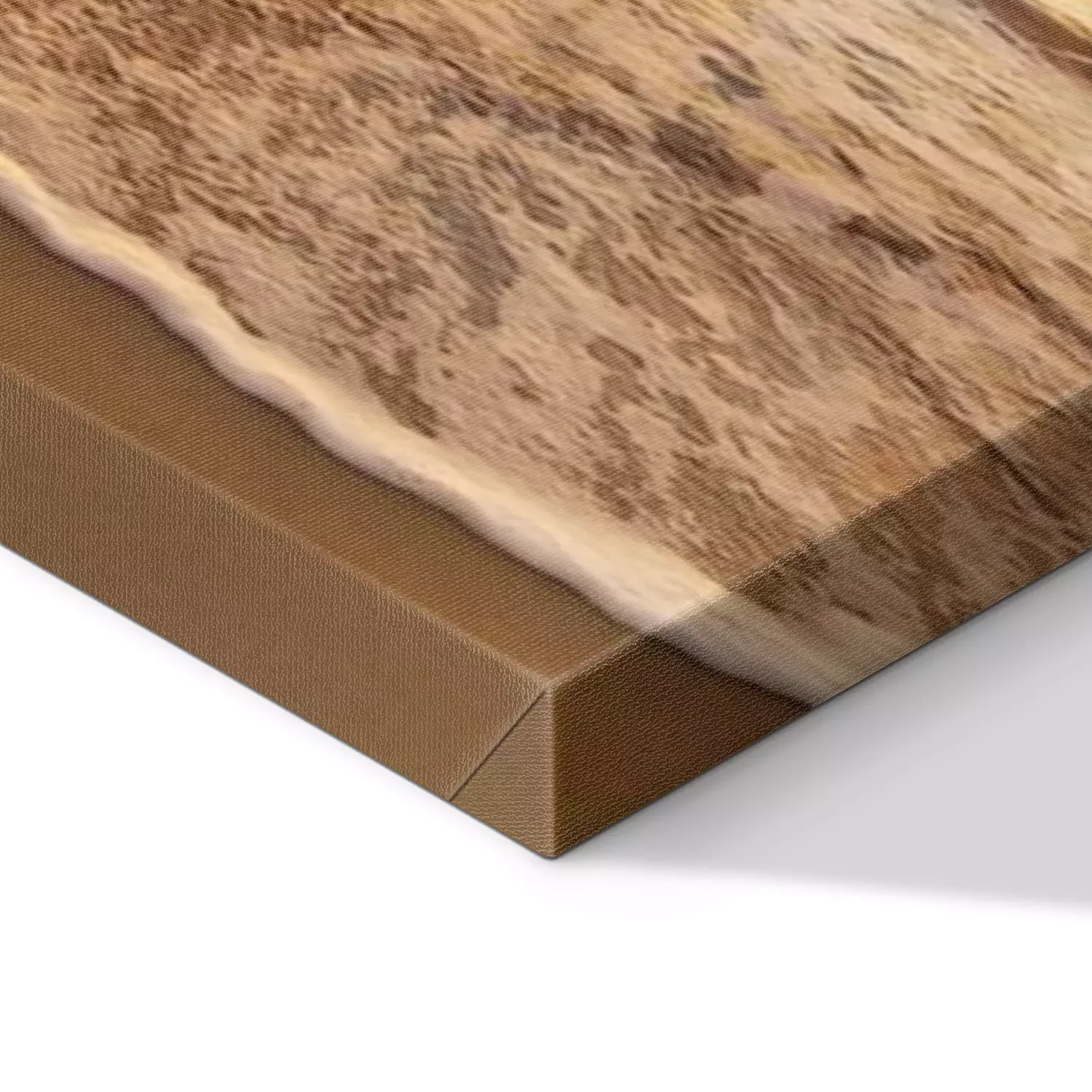 De print wordt aangebracht op hoogwaardig canvas dat op een schildersweefgetouw (spieraam) wordt gespannen. Omdat de print de zijranden bedekt, hoeft het ontwerp niet met een extra kader te worden omlijst. Wij raden ook composities aan die uit meerdere foto's bestaan en zo een coherente compositie vormen.