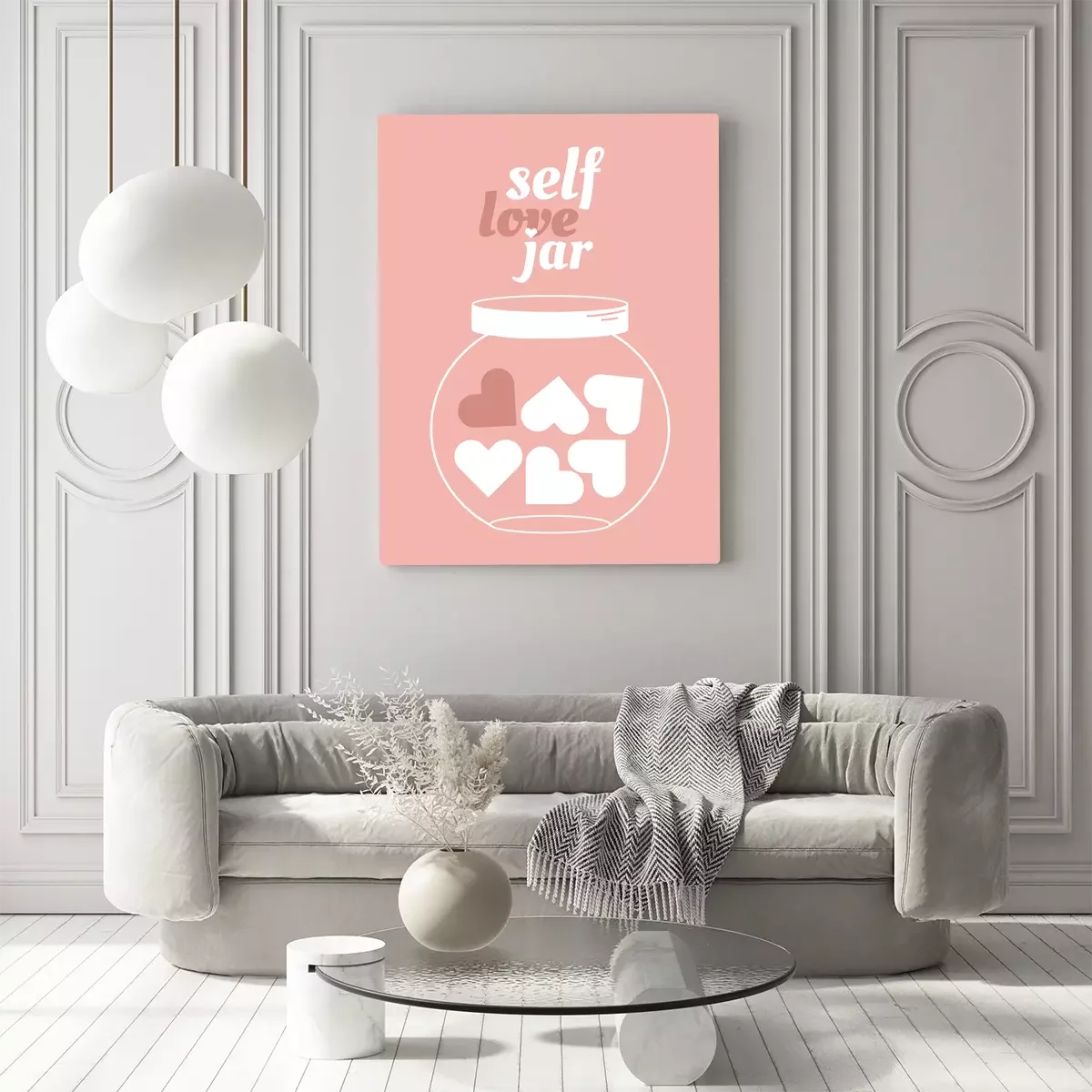 Een roze illustratie met een zelfacceptatiethema