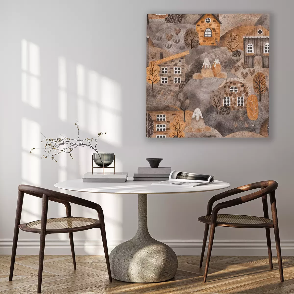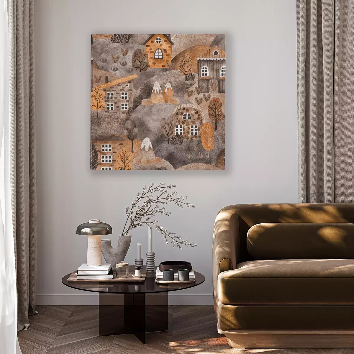 Een rustig herfstdorp met charmante heuvels