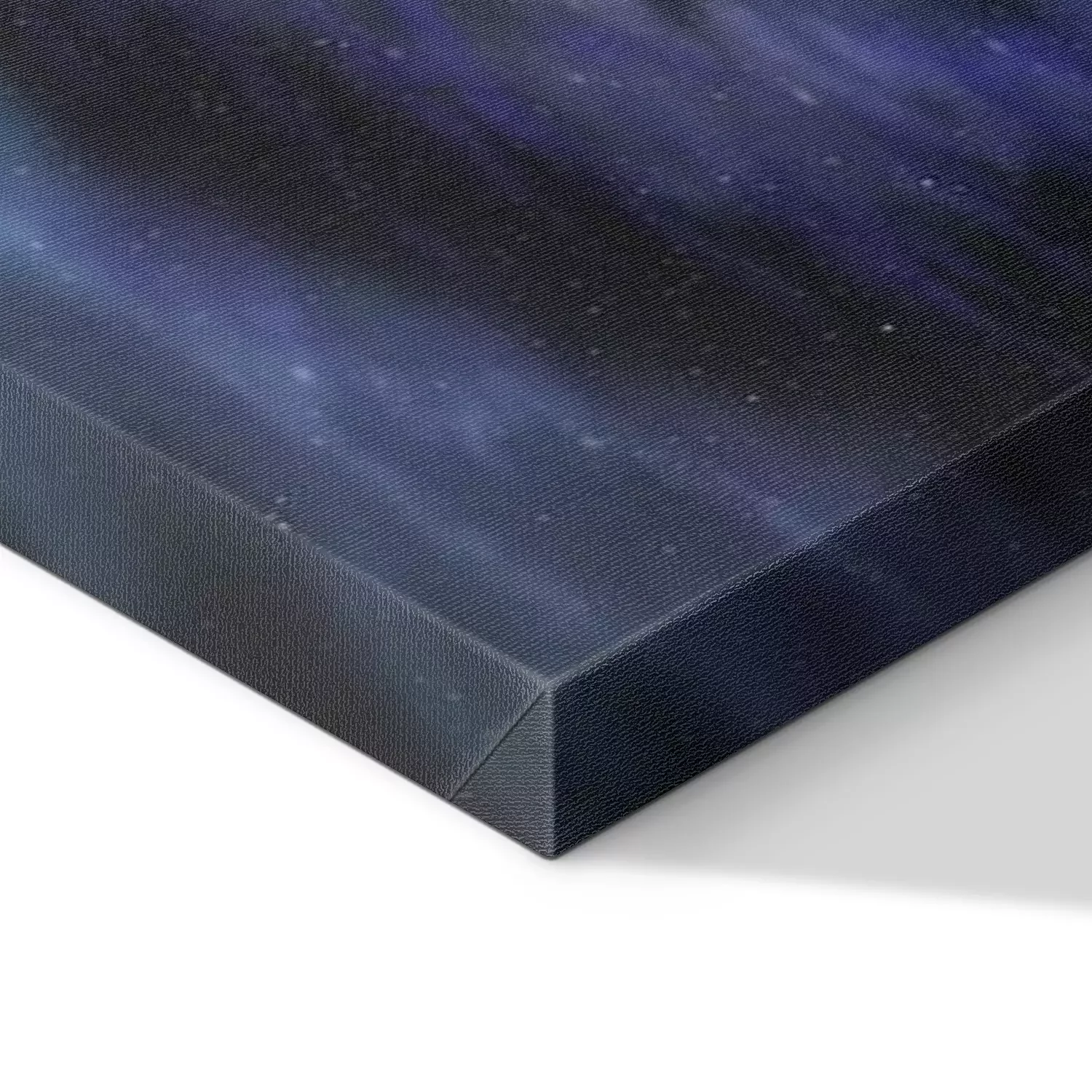 De print wordt aangebracht op hoogwaardig canvas dat op een schildersweefgetouw (spieraam) wordt gespannen. Omdat de print de zijranden bedekt, hoeft het ontwerp niet met een extra kader te worden omlijst. Wij raden ook composities aan die uit meerdere foto's bestaan en zo een coherente compositie vormen.