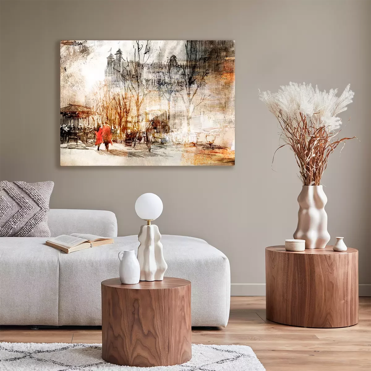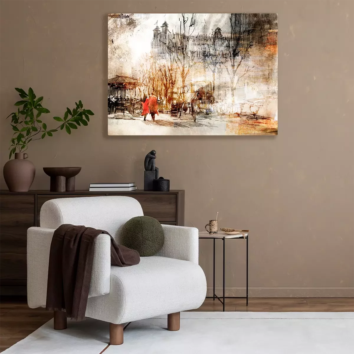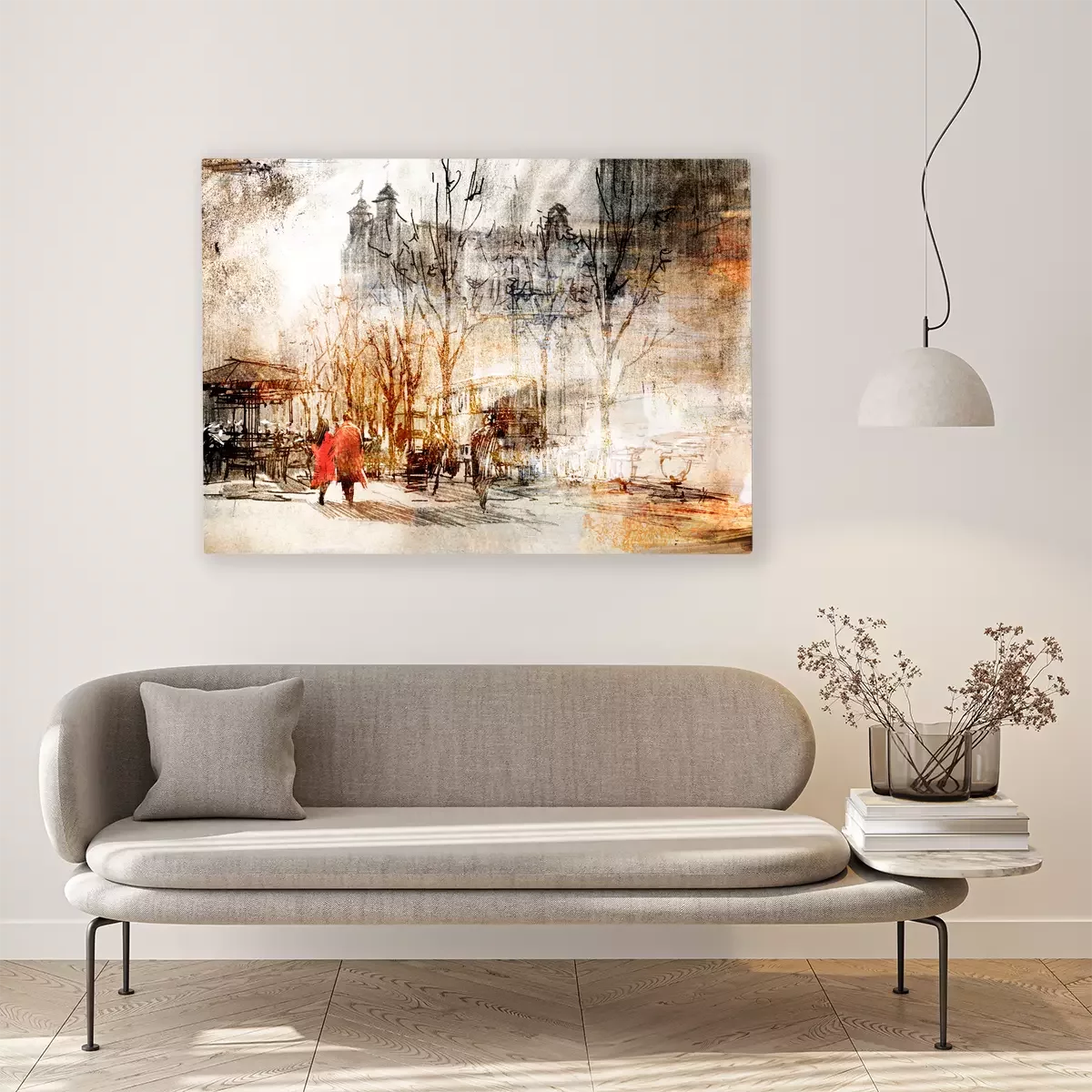 Een stel wandelt door de stad in een artistieke setting