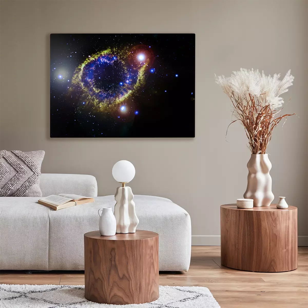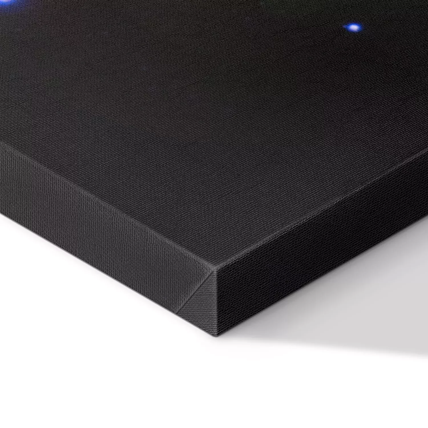De print wordt aangebracht op hoogwaardig canvas dat op een schildersweefgetouw (spieraam) wordt gespannen. Omdat de print de zijranden bedekt, hoeft het ontwerp niet met een extra kader te worden omlijst. Wij raden ook composities aan die uit meerdere foto's bestaan en zo een coherente compositie vormen.