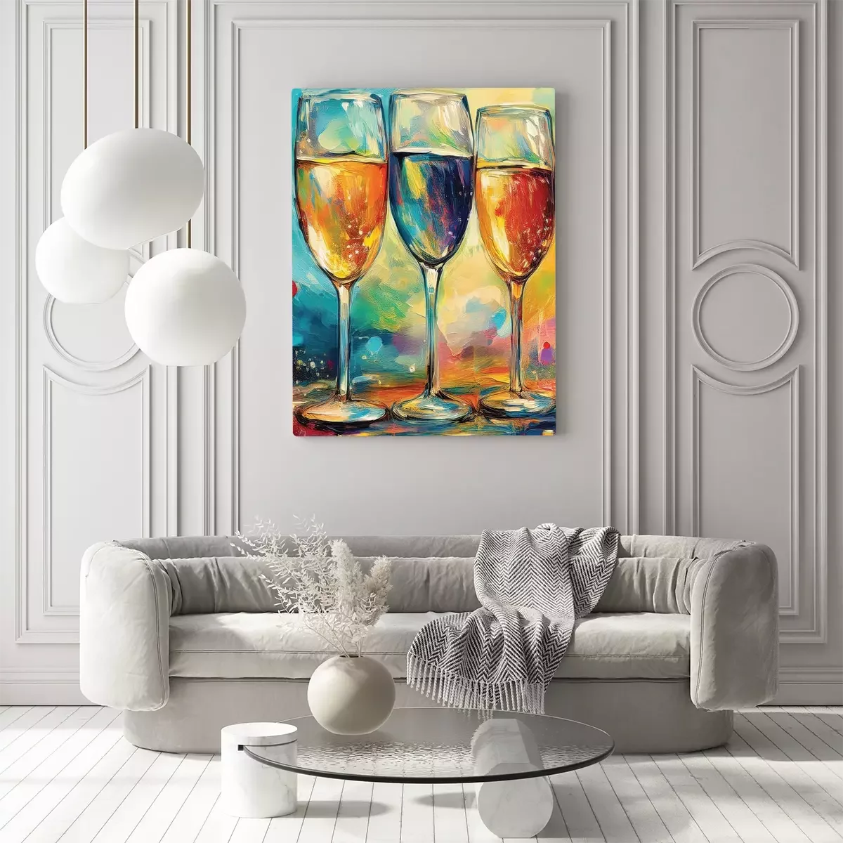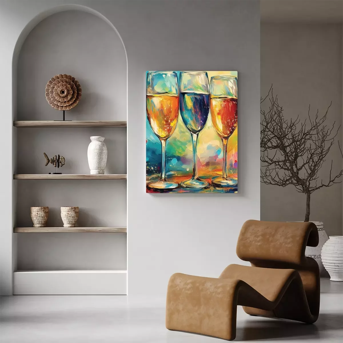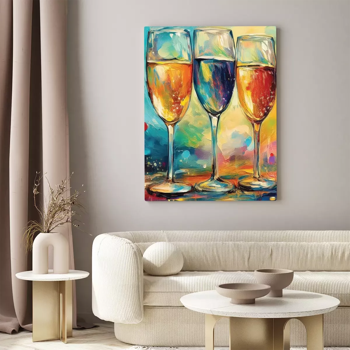 Een subtiel aquarelschilderij van champagneglazen
