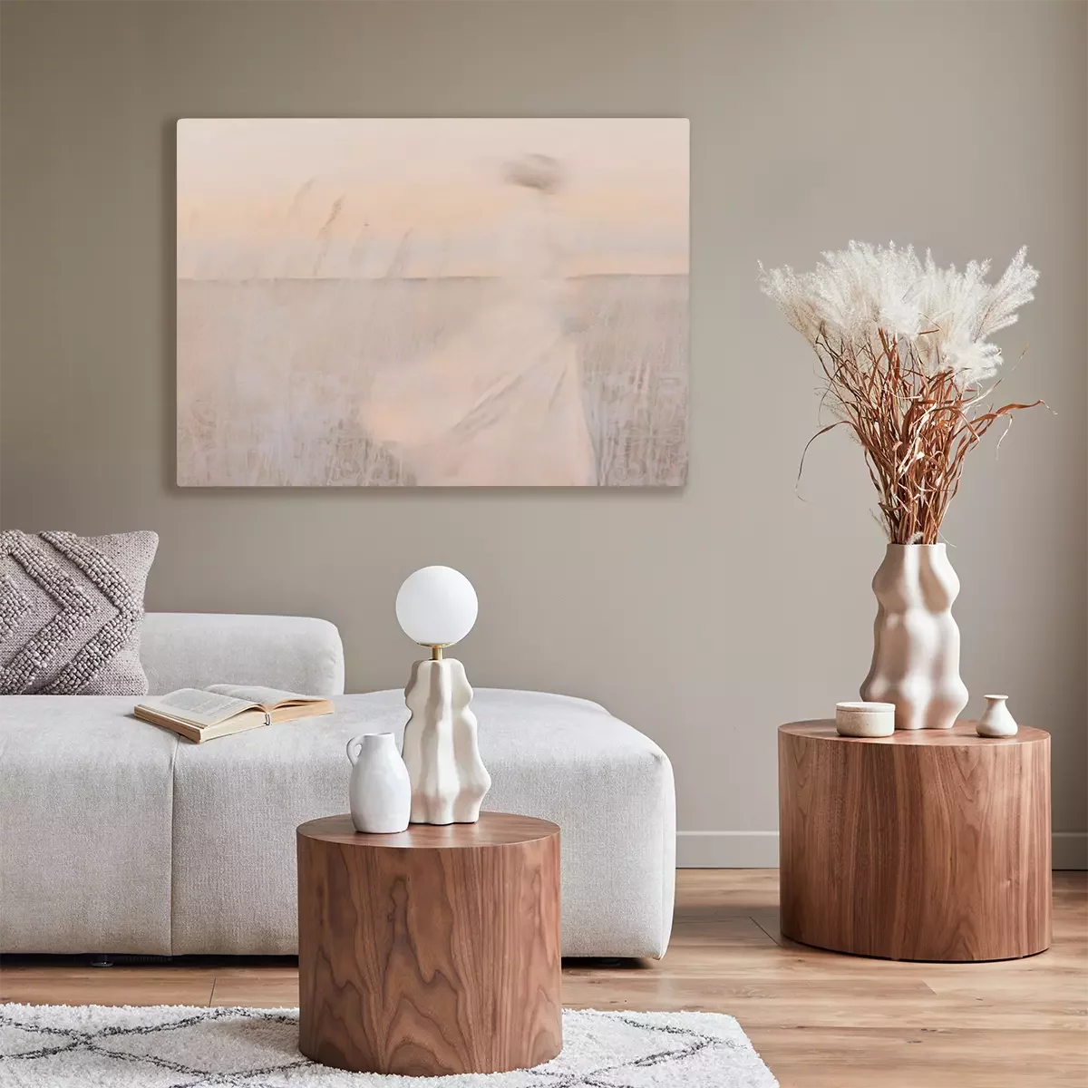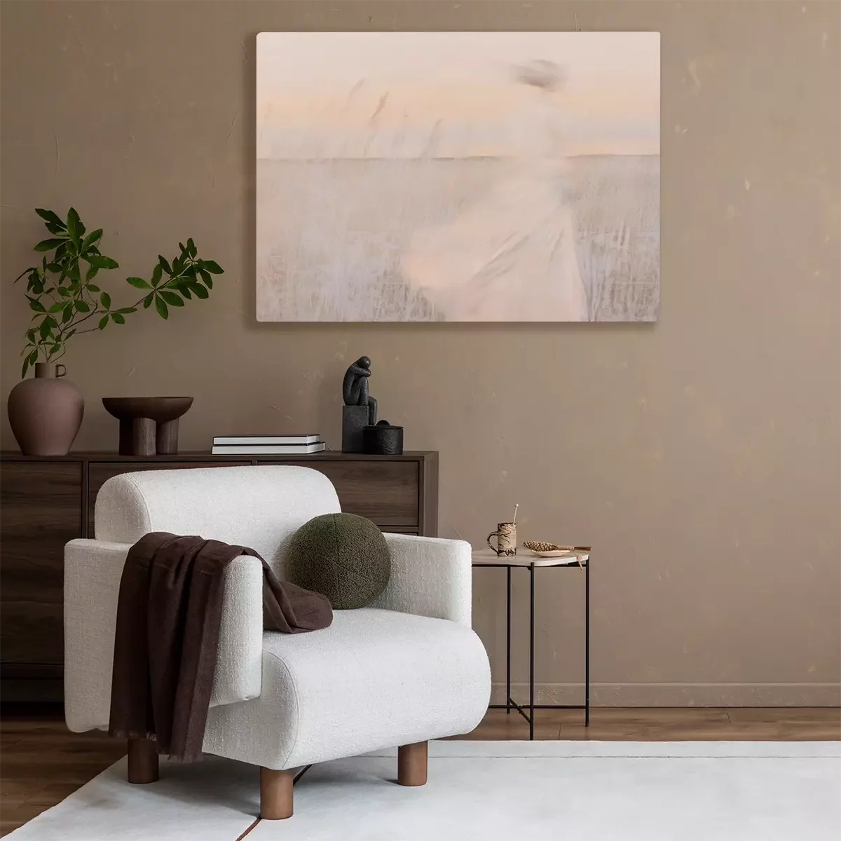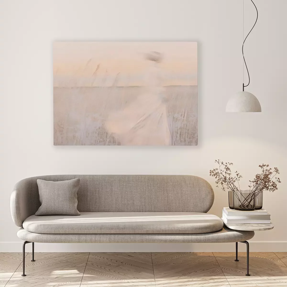 Een subtiel silhouet van een vrouw in een bloeiende weide