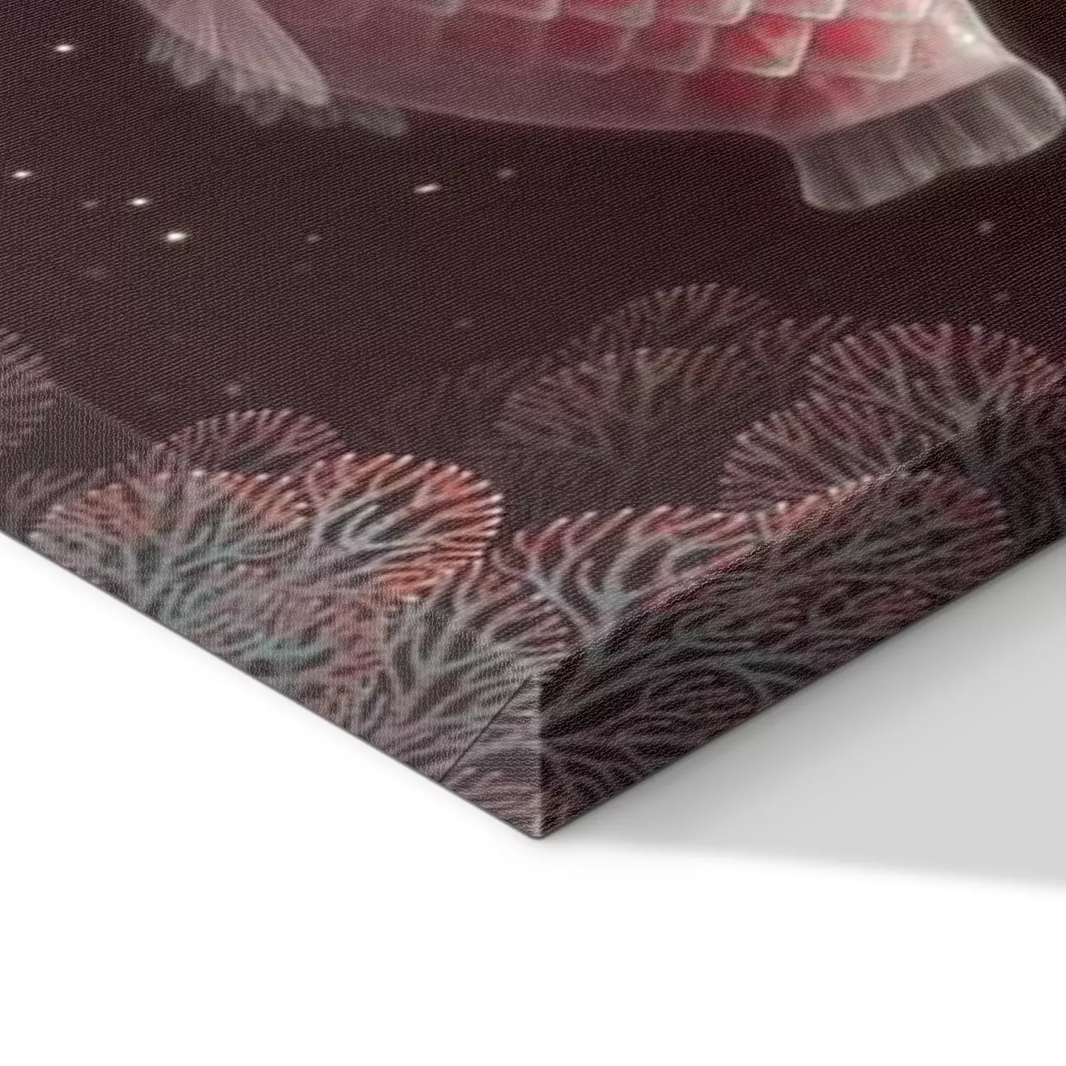 De print wordt aangebracht op hoogwaardig canvas dat op een schildersweefgetouw (spieraam) wordt gespannen. Omdat de print de zijranden bedekt, hoeft het ontwerp niet met een extra kader te worden omlijst. Wij raden ook composities aan die uit meerdere foto's bestaan en zo een coherente compositie vormen.