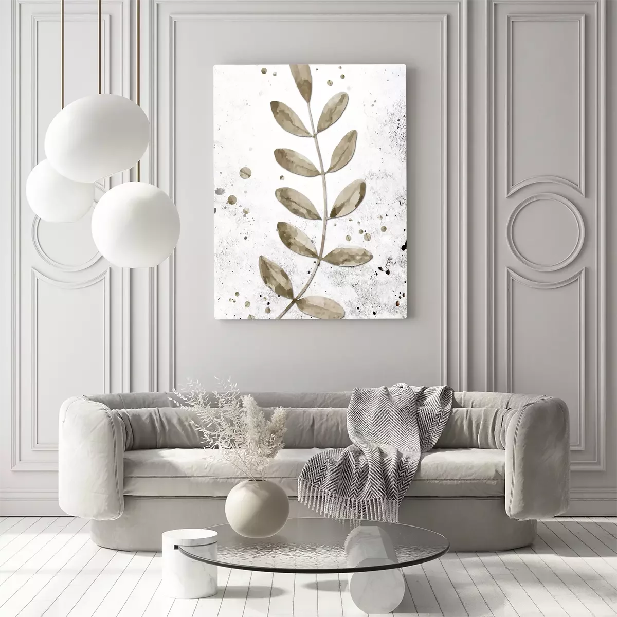 Een tak met kleine blaadjes geschilderd in waterverf