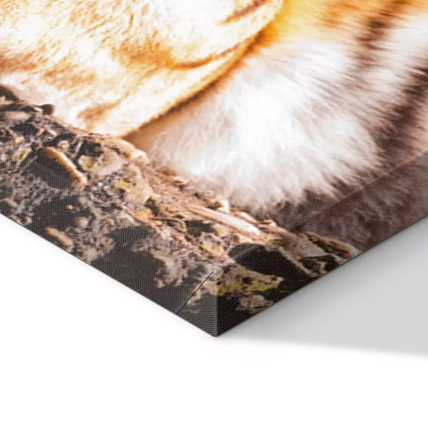 De print wordt aangebracht op hoogwaardig canvas dat op een schildersweefgetouw (spieraam) wordt gespannen. Omdat de print de zijranden bedekt, hoeft het ontwerp niet met een extra kader te worden omlijst. Wij raden ook composities aan die uit meerdere foto's bestaan en zo een coherente compositie vormen.