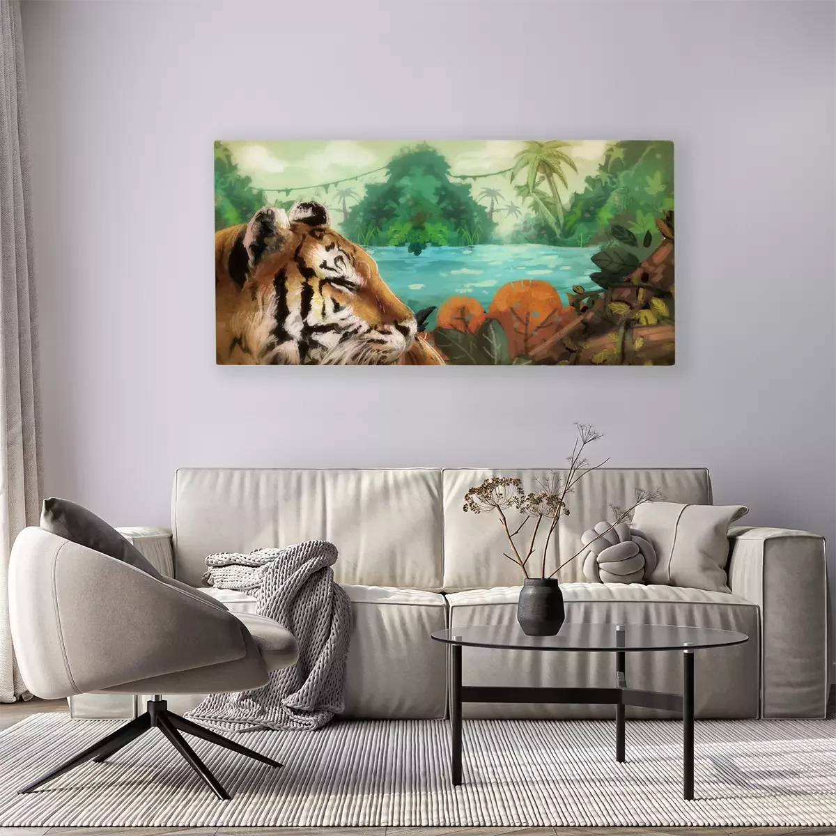 De print wordt aangebracht op hoogwaardig canvas dat op een schildersweefgetouw (spieraam) wordt gespannen. Omdat de print de zijranden bedekt, hoeft het ontwerp niet met een extra kader te worden omlijst. Wij raden ook composities aan die uit meerdere foto's bestaan en zo een coherente compositie vormen.