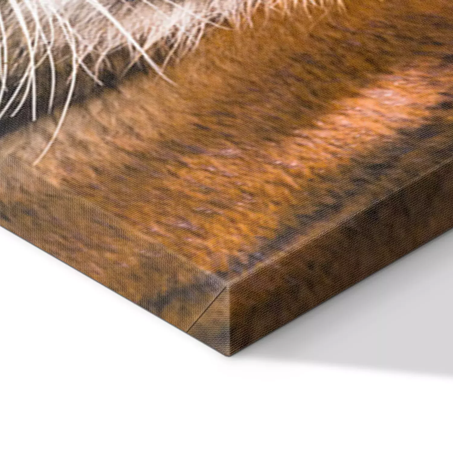 De print wordt aangebracht op hoogwaardig canvas dat op een schildersweefgetouw (spieraam) wordt gespannen. Omdat de print de zijranden bedekt, hoeft het ontwerp niet met een extra kader te worden omlijst. Wij raden ook composities aan die uit meerdere foto's bestaan en zo een coherente compositie vormen.